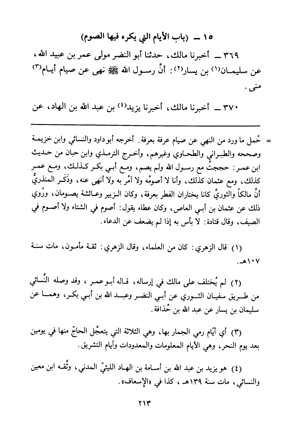 369 - أَخْبَرَنَا مَالِكٌ، حَدَّثَنَا أَبُو النَّضْرِ مَوْلَى عُمَرَ بْنِ عُبَيْدِ اللَّهِ، عَنْ سُلْيَمَانَ (¬1) بْنِ يَسَارٍ (¬2) : أنَّ رَسُولَ اللَّهِ صَلَّى اللَّهُ عَلَيْهِ وَسَلَّمَ نَهَى عَنْ صِيَامِ أَيَّامِ (¬3) مِنًى.