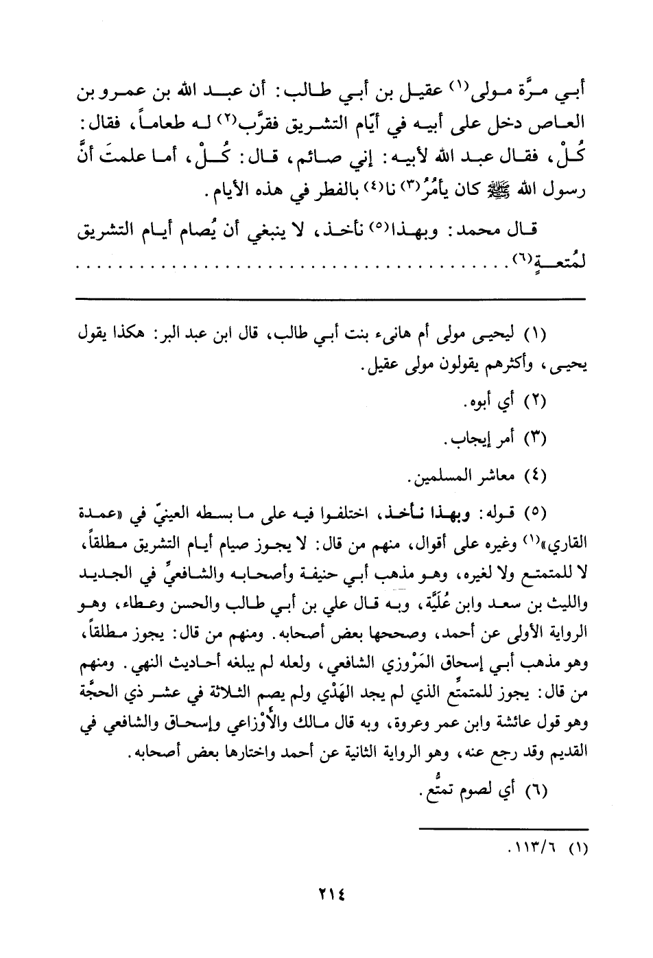 قَالَ مُحَمَّدٌ: وَبِهَذَا (¬5) نَأْخُذُ، لا يَنْبَغِي أَنْ يُصام أَيَّامُ التَّشْرِيقِ لمُتعةٍ (¬6)