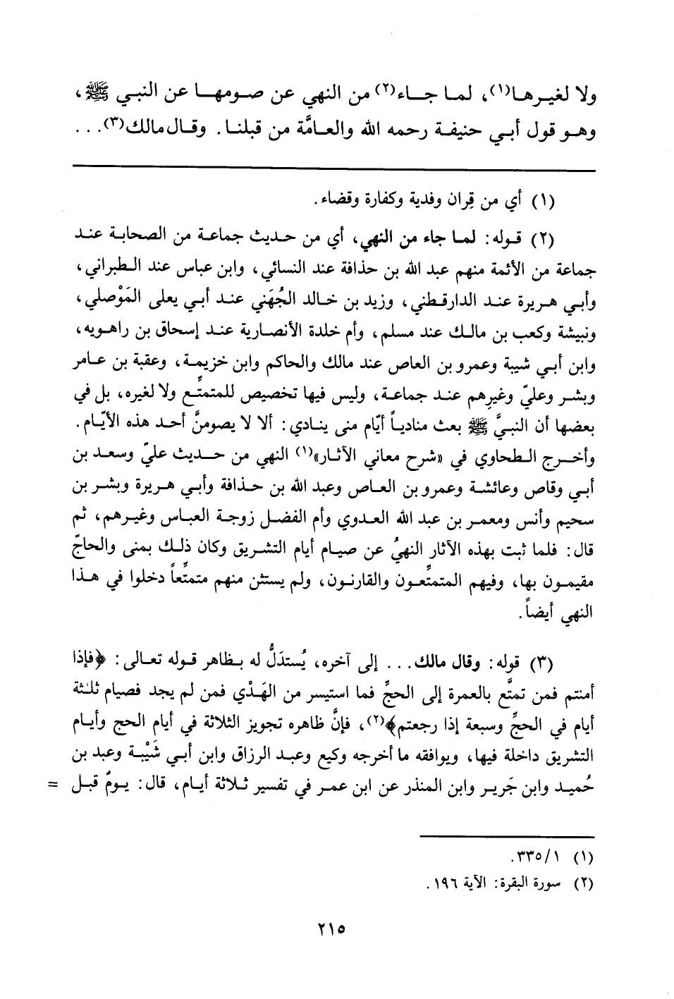 وأخرج الطحاوي في "شرح معاني الآثار" (1/335) النهي من حديث عليّ وسعد بن أبي وقاص وعائشة وعمرو بن العاص وعبد الله بن حذافة وأبي هريرة وبشر بن سحيم وأنس ومعمر بن عبد الله العدوي وأم الفضل زوجة العباس وغيرهم، ثم قال: فلما ثبت بهذه الآثار النهيُ عن صيام أيام التشريق وكان ذلك بمنى والحاجّ مقيمون بها، وفيهم المتمتِّعون والقارنون، ولم يستثن منهم متمتِّعاً دخلوا في هذا النهي أيضاً.