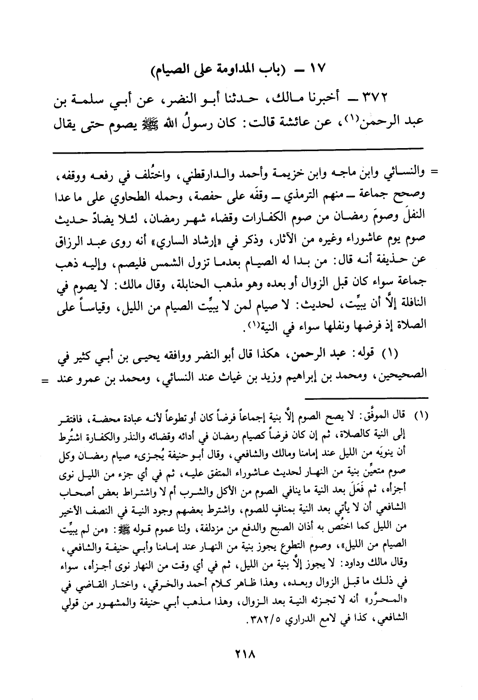 372 - أَخْبَرَنَا مَالِكٌ، حَدَّثَنَا أَبُو النَّضْرِ، عَنْ أَبِي سَلَمَةَ بْنِ عَبْدِ الرَّحْمَنِ (¬1) ، عَنْ عَائِشَةَ قَالَتْ: كَانَ رسولُ اللَّهِ صَلَّى اللَّهُ عَلَيْهِ وَسَلَّمَ يَصُومُ حَتَّى يُقَالَ