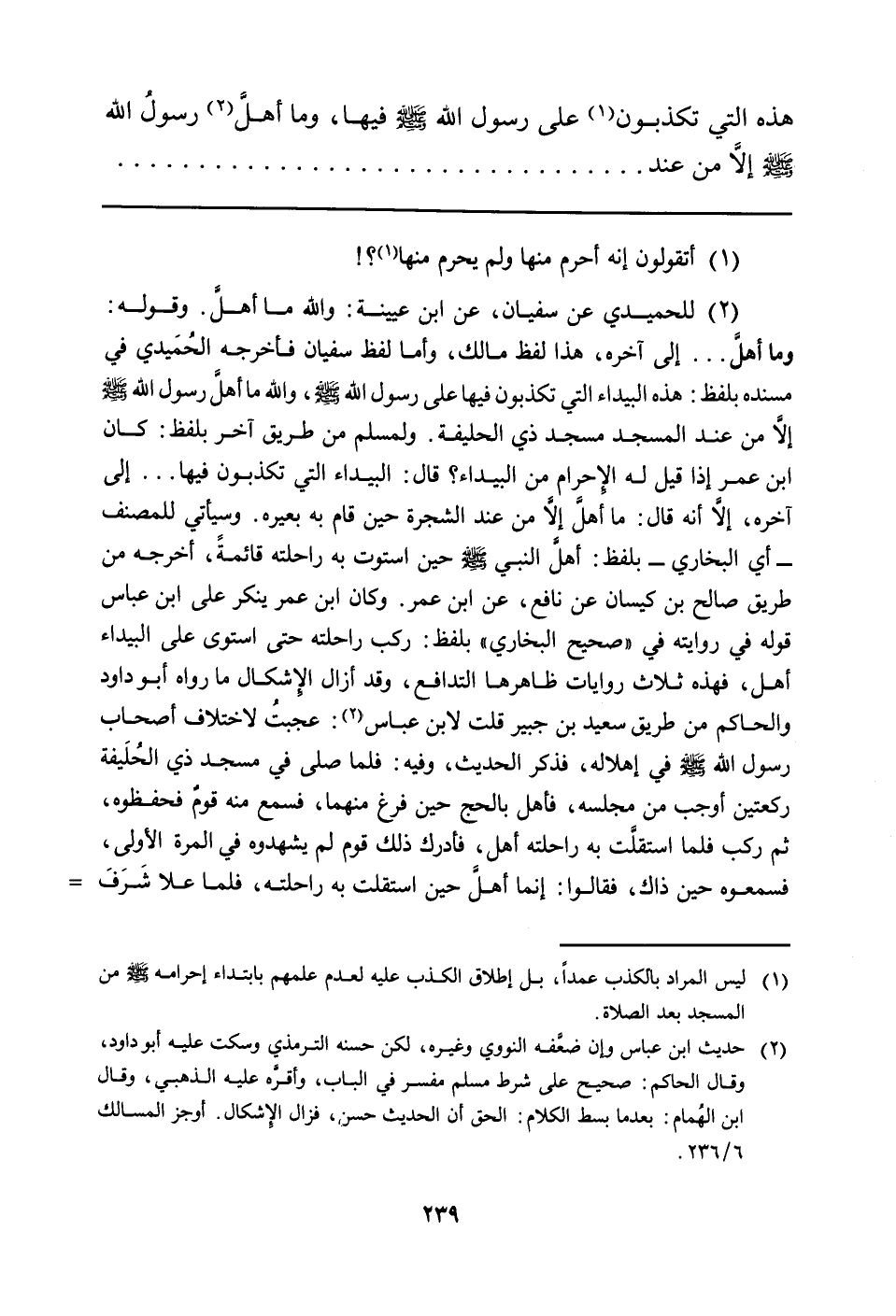 (¬1) أتقولون إنه أحرم منها ولم يحرم منها (ليس المراد بالكذب عمداً، بل إطلاق الكذب عليه لعدم علمهم بابتداء إحرامه صلّى الله عليه وسلّم من المسجد بعد الصلاة) ؟!