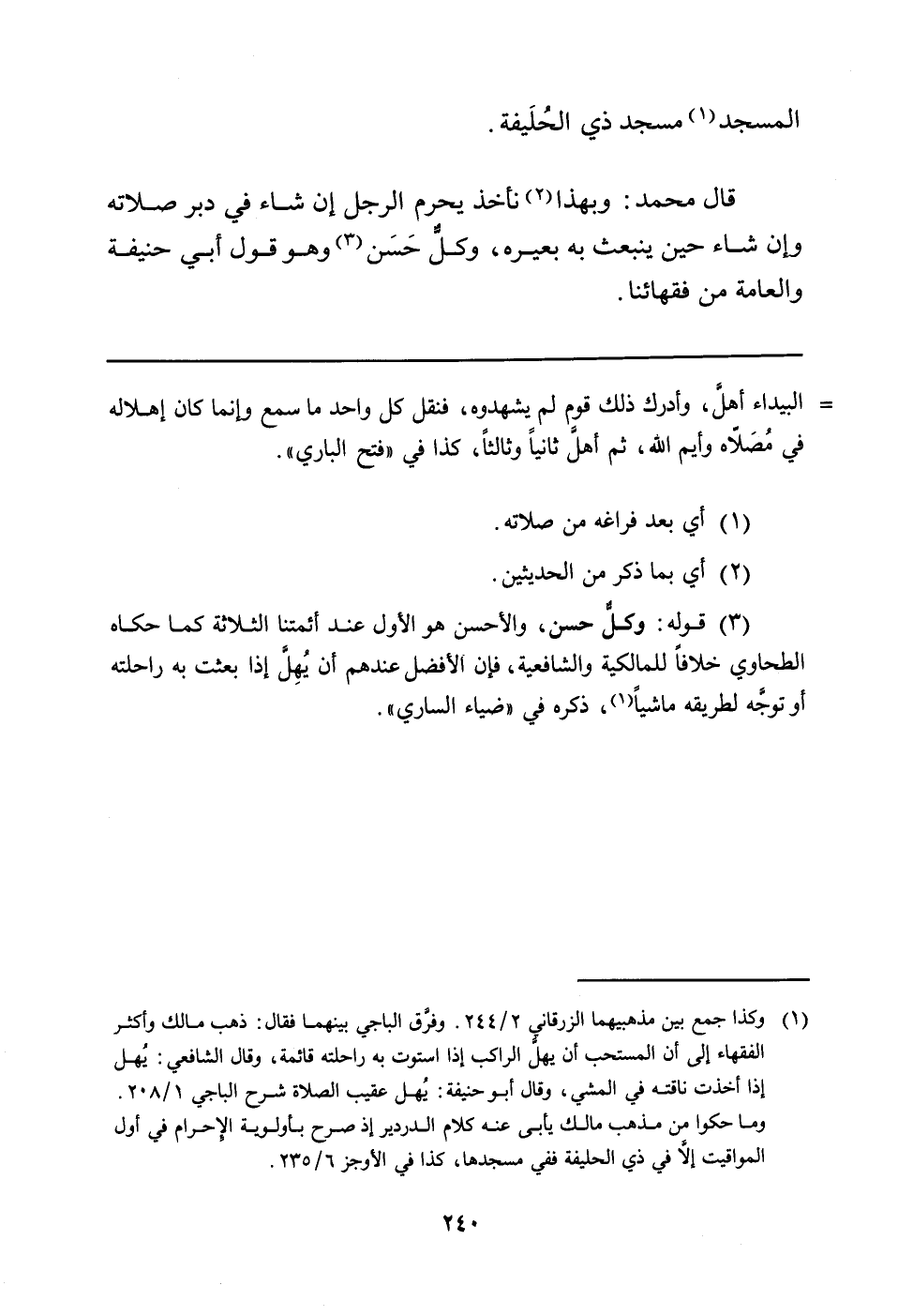 قَالَ مُحَمَّدٌ: وَبِهَذَا (¬2) نَأْخُذُ يُحْرِمُ الرَّجُلُ إِنْ شَاءَ فِي دُبُرِ صَلاتِهِ وَإِنْ شَاءَ حِينَ يَنْبَعِثُ بِهِ بَعِيرُهُ، وكلٌّ حَسَن (¬3) وَهُوَ قَوْلُ أَبِي حَنِيفَةَ وَالْعَامَّةِ من فقهائنا.
