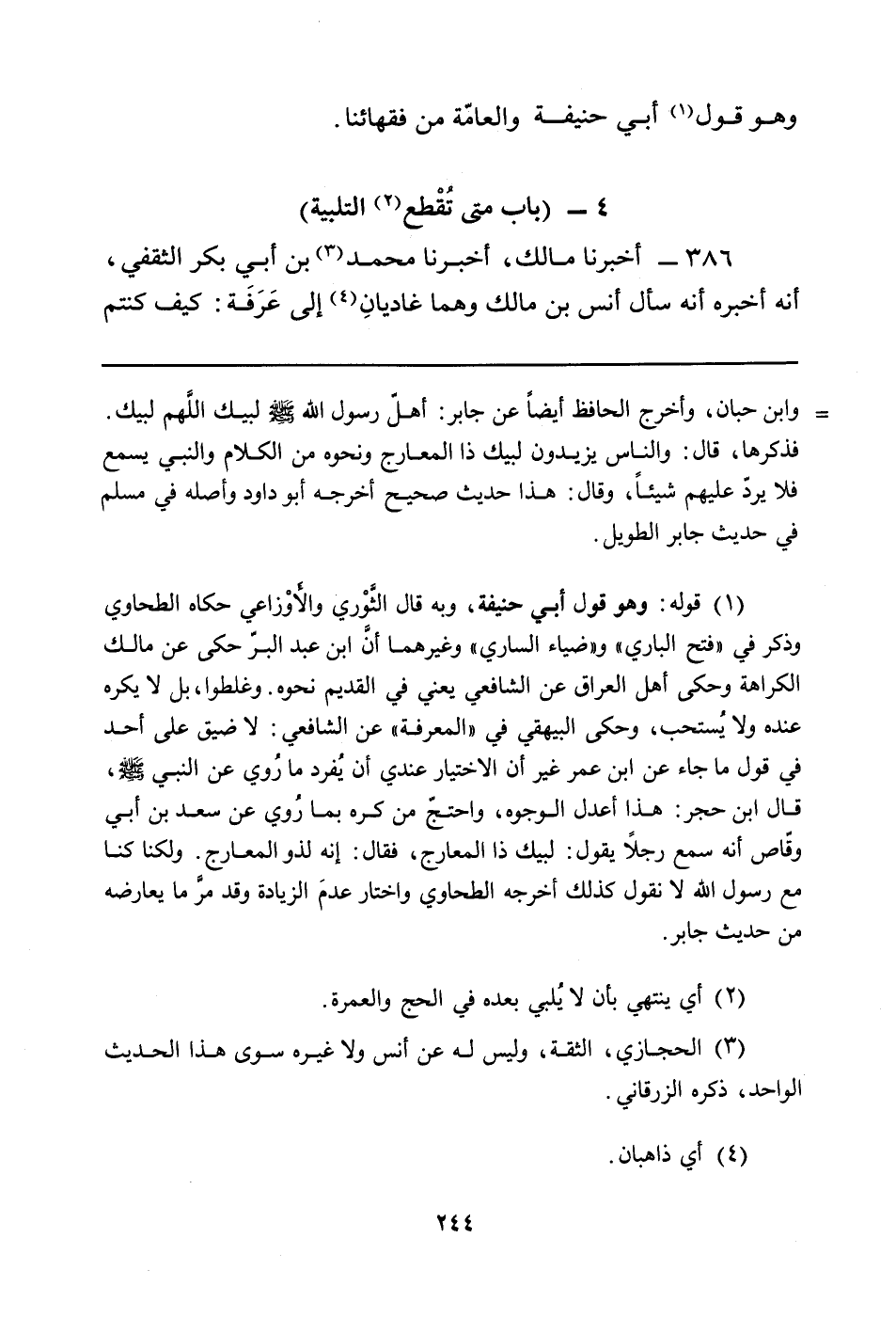 386 - أَخْبَرَنَا مَالِكٌ، أَخْبَرَنَا مُحَمَّدُ (¬3) بْنُ أَبِي بَكْرٍ الثَّقَفِيُّ، أَنَّهُ أَخْبَرَهُ أَنَّهُ سَأَلَ أَنَسَ بْنَ مَالِكٍ وَهُمَا غَادِيَانِ (¬4) إلى عَرَفَة: كيف كنتم