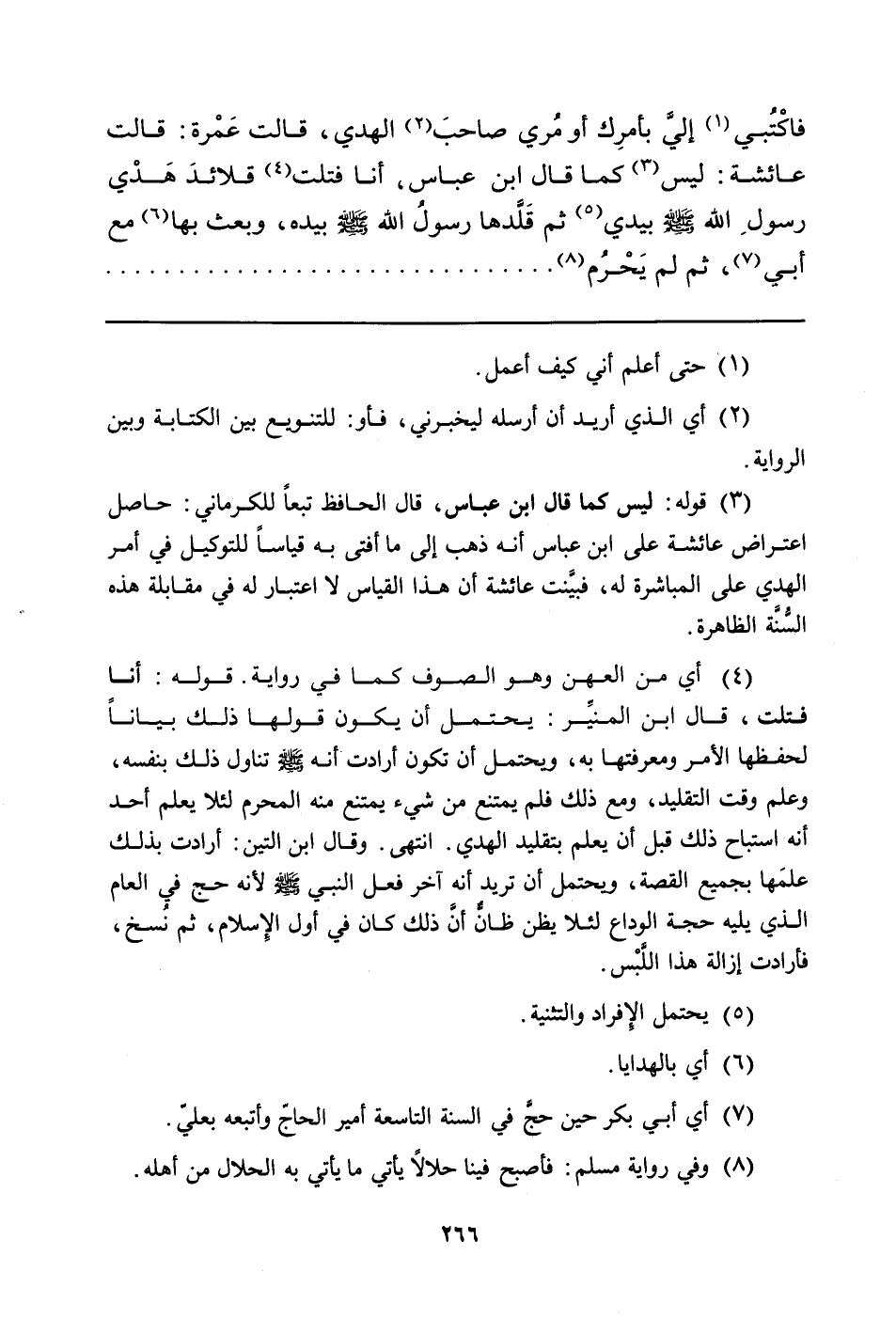 (¬3) قوله: ليس كما قال ابن عباس، قال الحافظ تبعاً للكرماني: حاصل اعتراض عائشة على ابن عباس أنه ذهب إلى ما أفتى به قياساً للتوكيل في أمر الهدي على المباشرة له، فبيَّنْت عائشة أن هذا القياس لا اعتبار له في مقابلة هذه السُّنَّة الظاهرة.