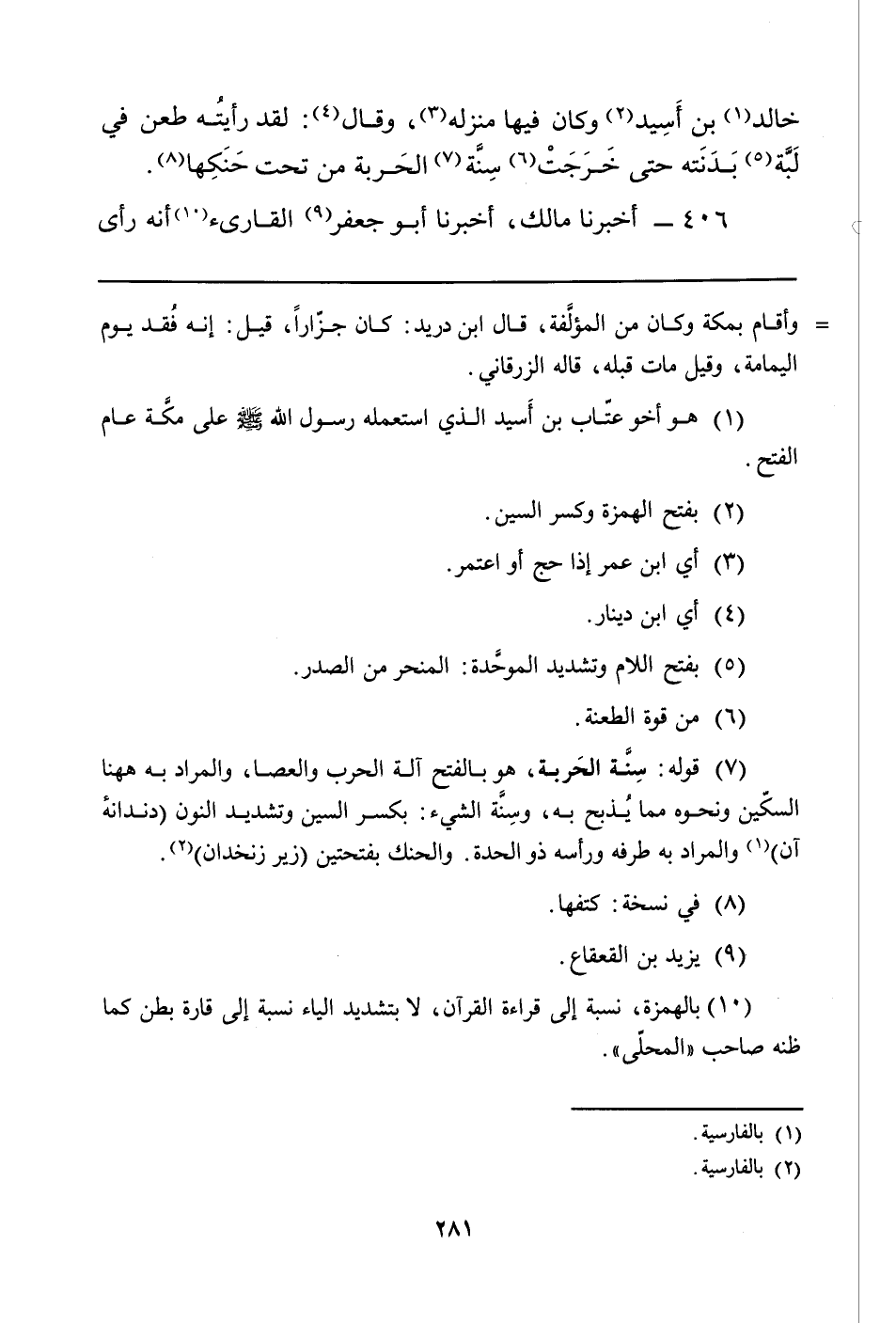 406 - أَخْبَرَنَا مَالِكٌ، أَخْبَرَنَا أَبُو جَعْفَرٍ (¬9) الْقَارِئُ (¬10) أَنَّهُ رَأَى