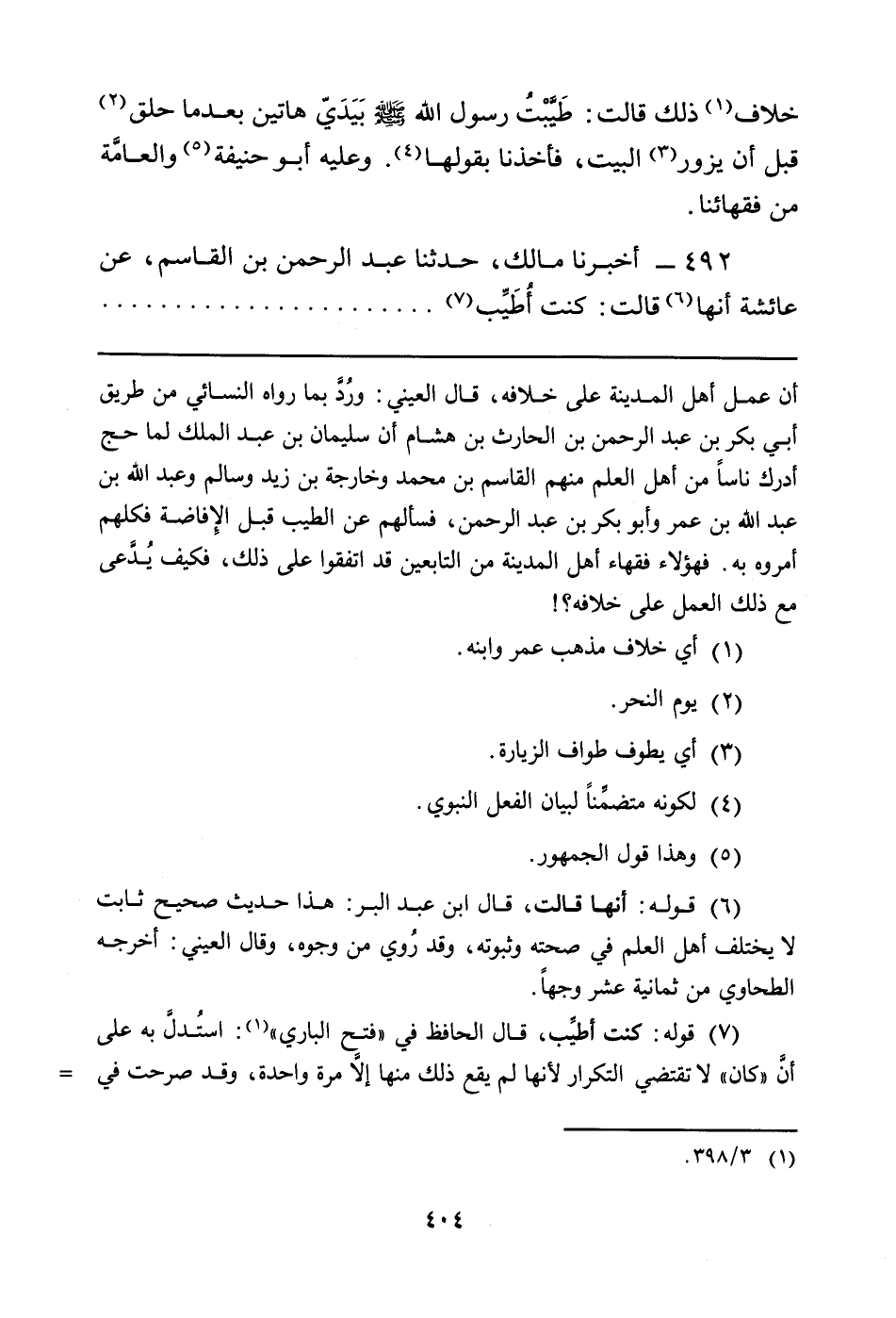 خِلافَ (¬1) ذَلِكَ قَالَتْ: طَيَّبْتُ رَسُولَ اللَّهِ صَلَّى اللَّهُ عَلَيْهِ وَسَلَّمَ بَيَديّ هَاتَيْنِ بَعْدَ مَا حَلَقَ (¬2) قَبْلَ أَنْ يَزُورَ (¬3) الْبَيْتَ، فَأَخَذْنَا بِقَوْلِهَا (¬4) . وَعَلَيْهِ أَبُو حَنِيفَةَ (¬5) والعامَّة مِنْ فُقَهَائِنَا.