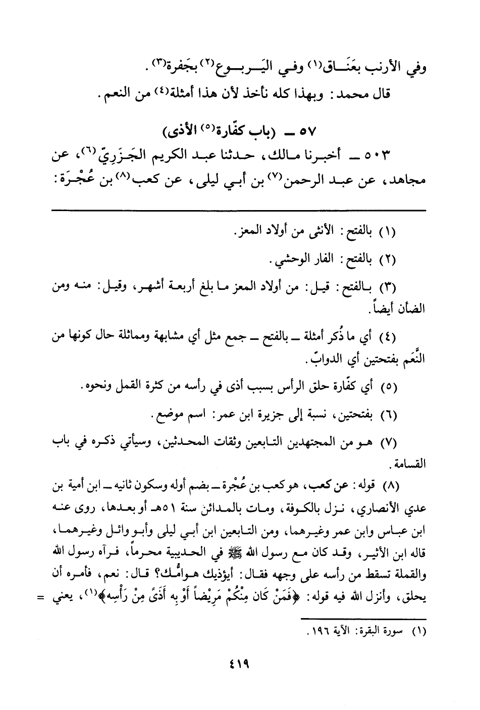 57 - (بَابُ كَفَّارَةِ (¬5) الأَذَى)