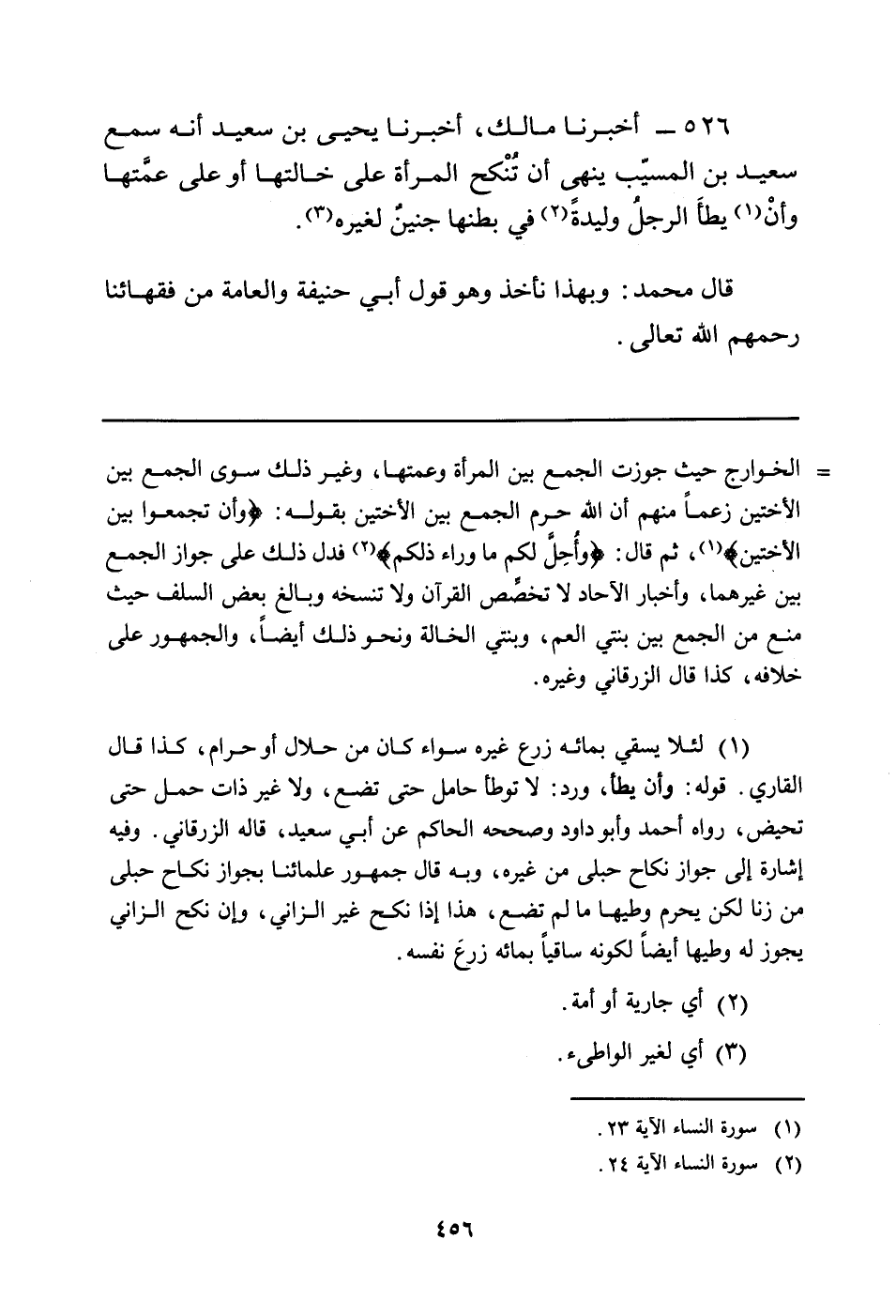 526 - أَخْبَرَنَا مَالِكٌ، أَخْبَرَنَا يَحْيَى بْنُ سَعِيدٍ أَنَّهُ سَمِعَ سَعِيدَ بْنَ الْمُسَيِّبِ يَنْهَى أَنْ تُنْكح الْمَرْأَةُ عَلَى خَالَتِهَا أَوْ عَلَى عمَّتها وأنْ (¬1) يطأَ الرجلُ وَلِيدَةً (¬2) فِي بَطْنِهَا جنينٌ لِغَيْرِهِ (¬3) .