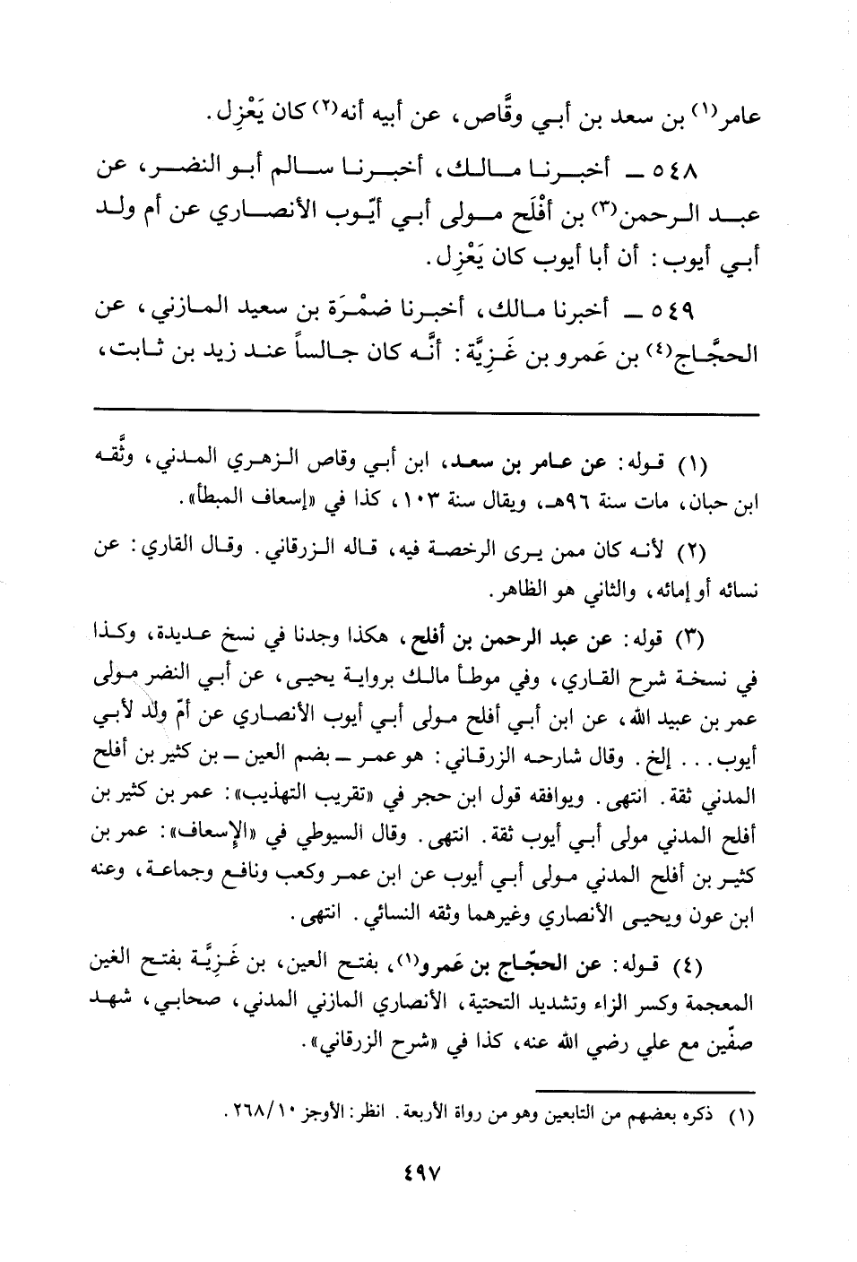 548 - أَخْبَرَنَا مَالِكٌ، أَخْبَرَنَا سَالِمٌ أَبُو النَّضْرِ، عَنْ عَبْدِ الرَّحْمَنِ (¬3) بْنِ أفْلَح مَوْلَى أَبِي أَيُّوبَ الأَنْصَارِيِّ عَنْ أُمِّ وَلَدِ أَبِي أَيُّوبَ: أَنَّ أَبَا أَيُّوبَ كَانَ يَعْزِل.