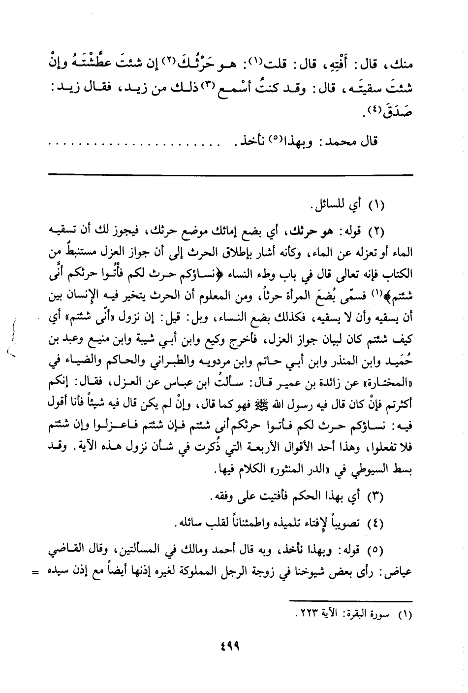 مِنْكَ، قَالَ. أَفْتِهِ، قَالَ: قُلْتُ (¬1) : هُوَ حَرْثُكَ (¬2) إِنْ شئتَ عطَّشْتَهُ وإنْ شئتَ سقيتَه، قَالَ: وَقَدْ كُنْتُ أسْمع (¬3) ذَلِكَ مِنْ زَيْدٍ، فَقَالَ زيد: صَدَقَ (¬4) .