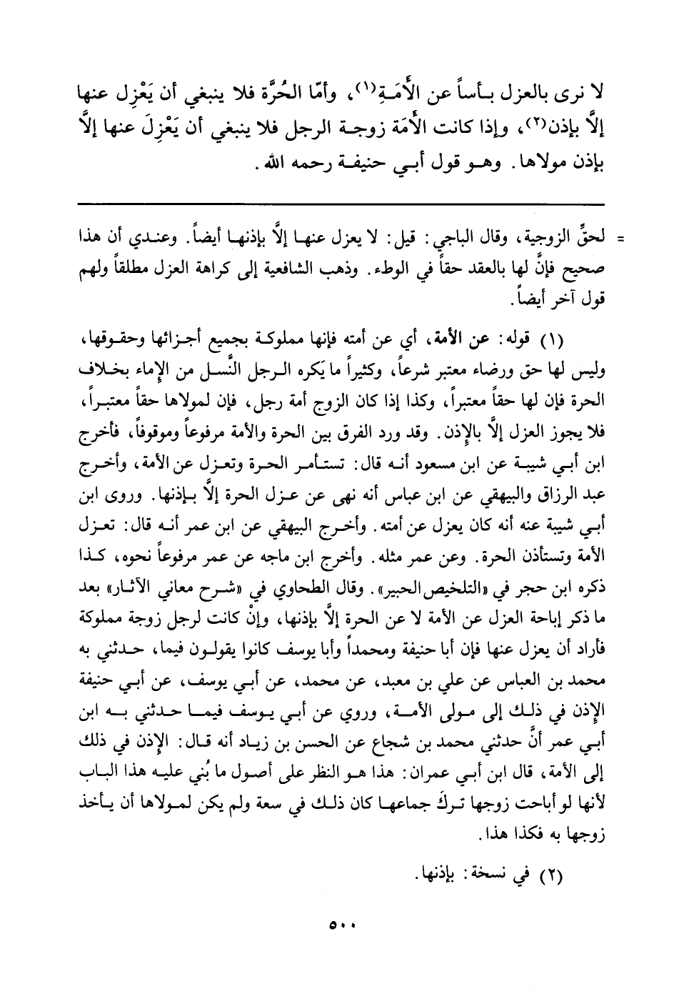 لا نَرَى بِالْعَزْلِ بَأْسًا عَنِ الأَمَةِ (¬1) ، وَأَمَّا الحُرَّة فَلا يَنْبَغِي أَنْ يَعزِل عَنْهَا إلاَّ بِإِذْنٍ (¬2) ، وَإِذَا كَانَتِ الأَمَة زَوْجَةَ الرَّجُلِ فَلا يَنْبَغِي أَنْ يَعزِلَ عَنْهَا إلاَّ بِإِذْنٍ مَوْلاهَا. وهو قول أبي حنيفة رحمه الله.