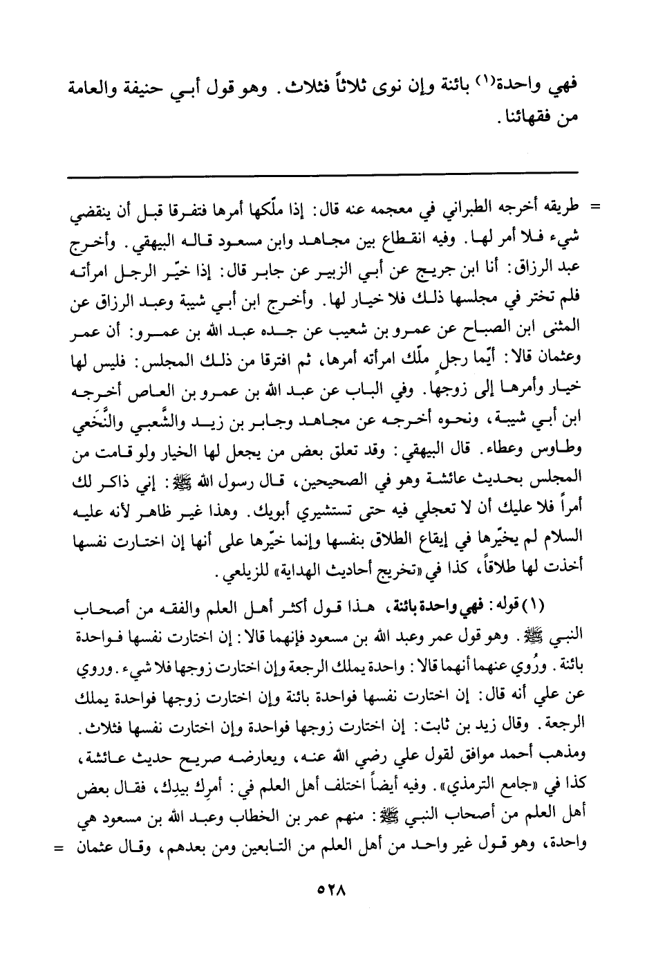 طريقه أخرجه الطبراني في معجمه عنه قال: إذا ملّكها أمرها فتفرقا قبل أن ينقضي شيء فلا أمر لها. وفيه انقطاع بين مجاهد وابن مسعود قاله البيهقي. وأخرج عبد الرزاق: أنا ابن جريج عن أبي الزبير عن جابر قال: إذا خيّر الرجل امرأته فلم تختر في مجلسها ذلك فلا خيار لها. وأخرج ابن أبي شيبة وعبد الرزاق عن المثنى ابن الصباح عن عمرو بن شعيب عن جده عبد الله بن عمرو: أن عمر وعثمان قالا: أيّما رجلٍ ملّك امرأته أمرها، ثم افترقا من ذلك المجلس: فليس لها خيار وأمرها إلى زوجها. وفي الباب عن عبد الله بن عمرو بن العاص أخرجه ابن أبي شيبة، ونحوه أخرجه عن مجاهد وجابر بن زيد والشَّعبي والنَّخَعي وطاوس وعطاء. قال البيهقي: وقد تعلق بعض من يجعل لها الخيار ولو قامت من المجلس بحديث عائشة وهو في الصحيحين، قال رسول الله صلى الله عليه وسلّم: إني ذاكر لك أمراً فلا عليك أن لا تعجلي فيه حتى تستشيري أبويك. وهذا غير ظاهر لأنه عليه السلام لم يخّيرها في إيقاع الطلاق بنفسها وإنما خيّرها على أنها إن اختارت نفسها أخذت لها طلاقاً، كذا في "تخريج أحاديث الهداية" للزيلعي.