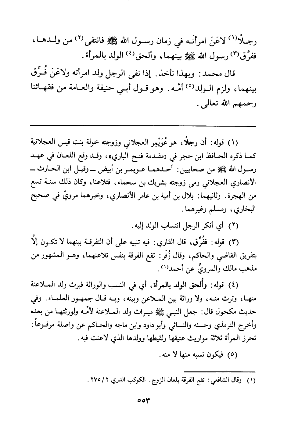 قَالَ مُحَمَّدٌ: وَبِهَذَا نَأْخُذُ. إِذَا نَفَى الرَّجُلُ وَلَدَ امْرَأَتِهِ ولاعَنَ فُرِّق بَيْنَهُمَا، وَلَزِمَ الْوَلَدُ (¬5) أمَّه. وَهُوَ قَوْلُ أبي حنيفة والعامة من فقهائنا رحمهم الله تعالى.