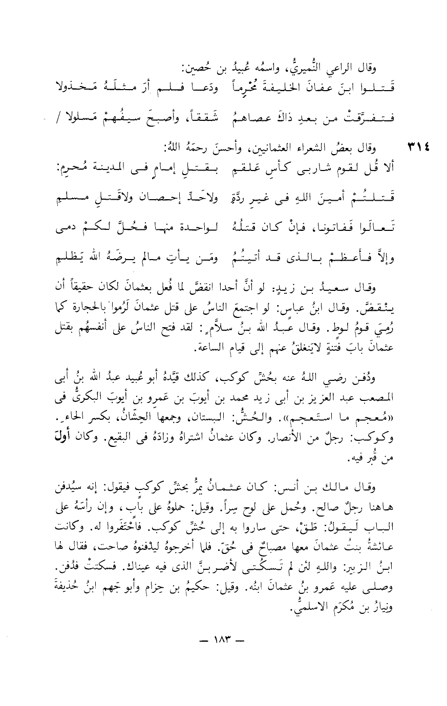 قَتلتُمْ أمينَ اللهِ في غَيرِ رِدَّةٍ ... ولا حَدِّ إحصان ولا قَتلِ مسلمِ
