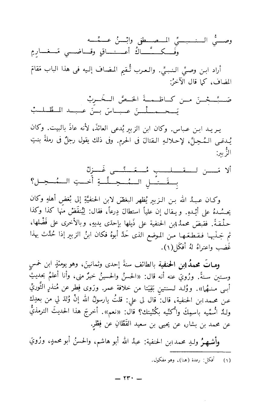 يريد ابن عباس. وكان ابن الزبير يُدعى العائذ، لأنه عاذ بالبيت. وكان يُدعى المُحِلَّ لإحلاله القتال في الحرم. وفي ذلك يقول رجل في رملة بنت الزبير:
