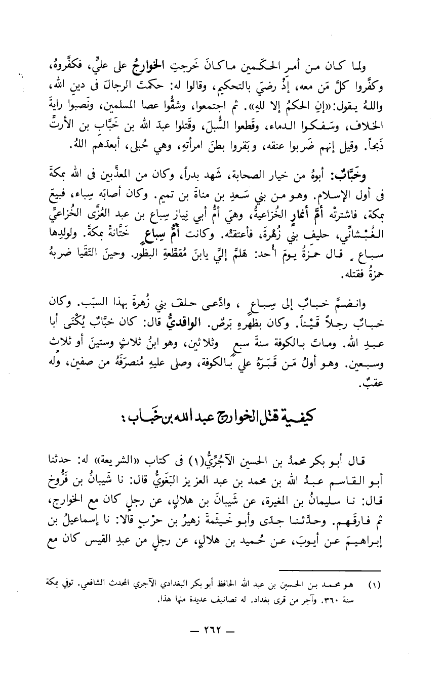 كيفية قتل الخوارج عبد الله بن خَباب