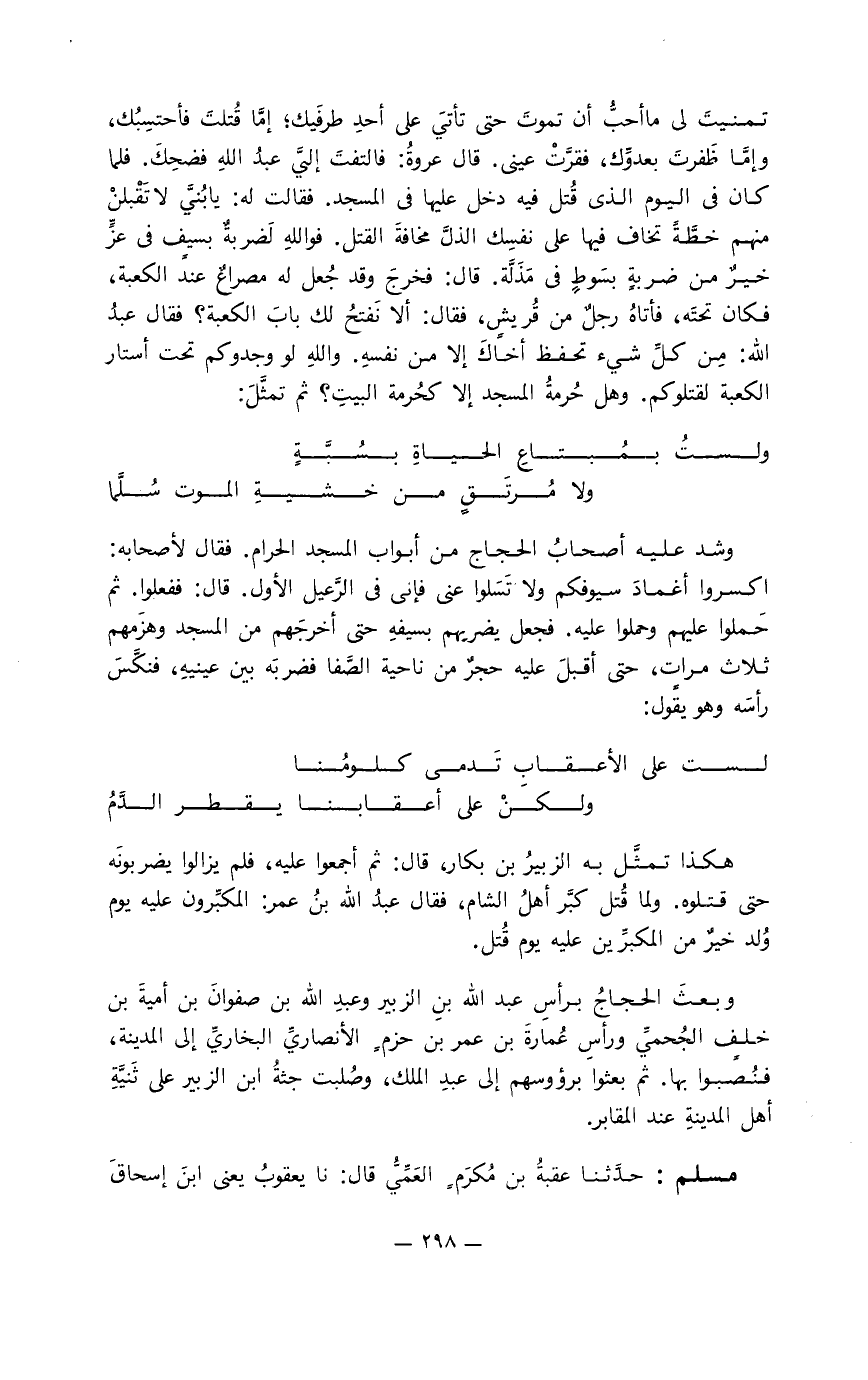 مسلم: حدَّثنا عقبةُ بن مُكرَمٍ العَمِّيُّ قال: نا يعقوب يعني ابن إسحاق