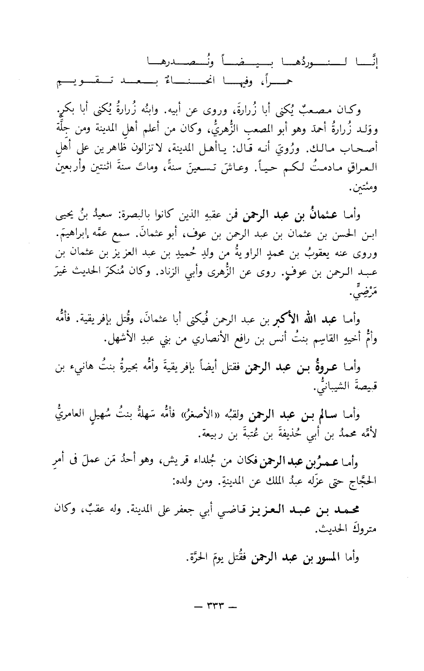 وأما عروة بن عبد الرحمن فقتل أيضا بإفريقية وأمُّه بحيرة بنت هانئ بن قبيصة الشيباني.