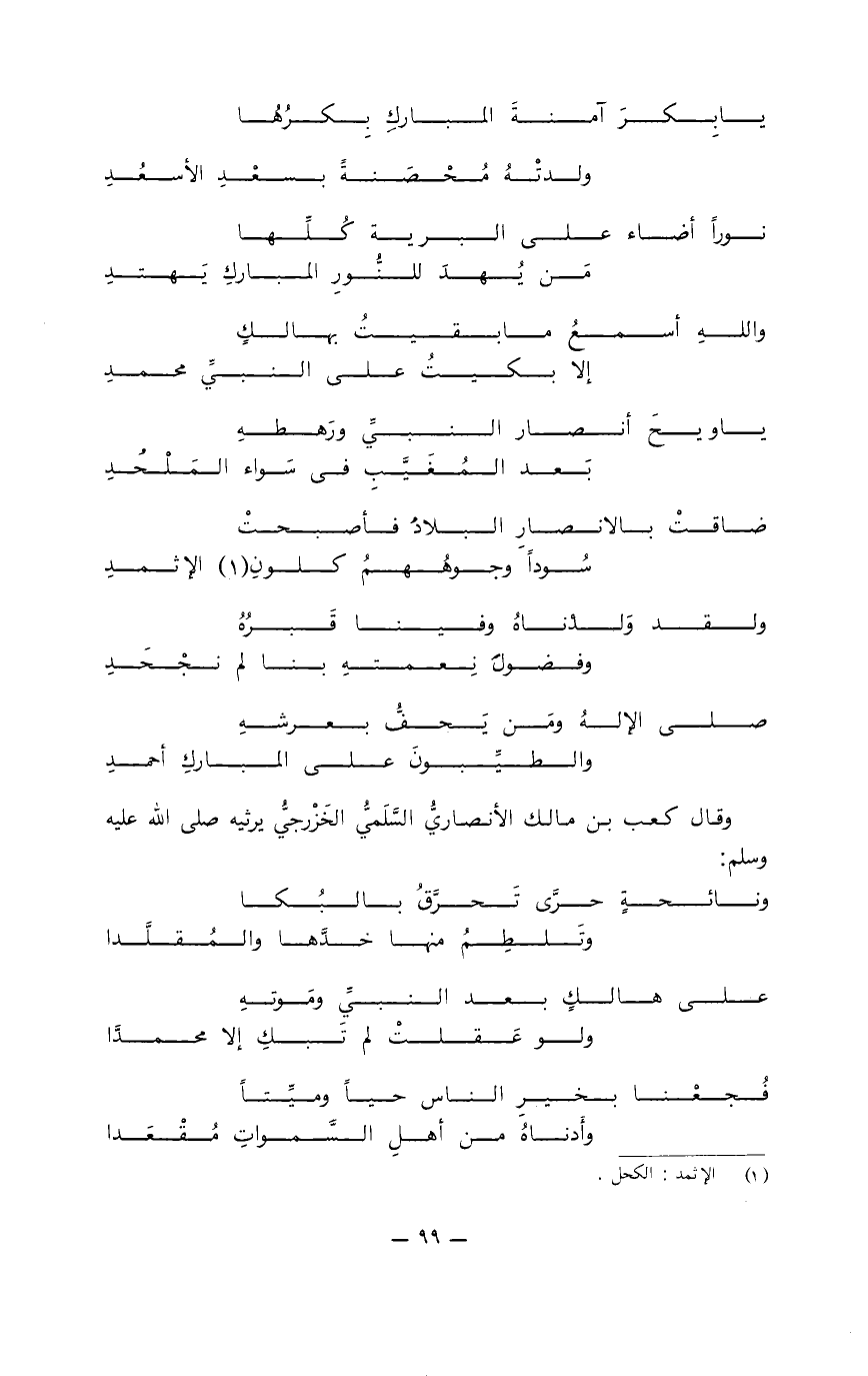 وقال كعب بن مالك الأنصاريُّ السَّلَميُّ الخَزرَجيُّ يرثيه صلى الله عليه وسلم: