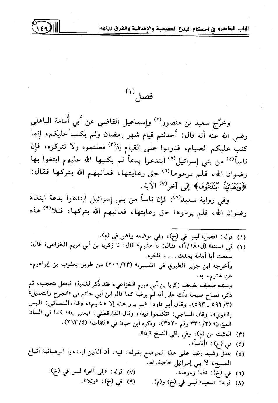 (¬5) علق رشيد رضا على هذا الموضع بقوله: فيه: أن الذين ابتدعوا الرهبانية أتباع المسيح، لا بني إسرائيل خاصة. اهـ.