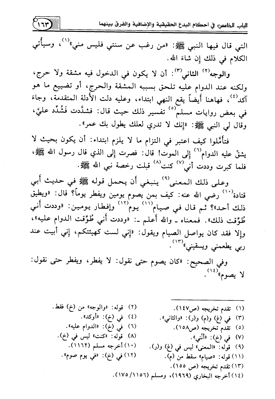 الَّتِي قَالَ فِيهَا النَّبِيُّ صَلَّى اللَّهُ عَلَيْهِ وَسَلَّمَ: "مَنْ رَغِبَ عَنْ سُنَّتِي فَلَيْسَ مِنِّي" (¬1)، وسيأْتي الْكَلَامُ فِي ذَلِكَ إِن شاءَ اللَّهُ.