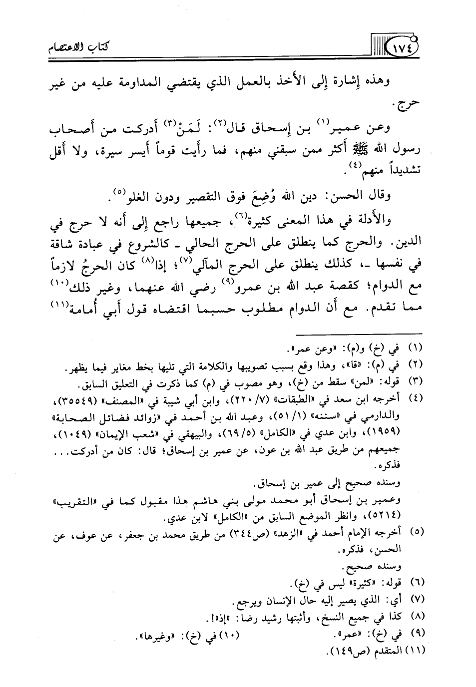 والأَدلة فِي هَذَا الْمَعْنَى كَثِيرَةٌ (¬6)، جَمِيعُهَا رَاجِعٌ إِلى أَنه لَا حَرَجَ فِي الدِّينِ. وَالْحَرَجُ كَمَا يَنْطَلِقُ عَلَى الْحَرَجِ الْحَالِيِّ ـ كَالشُّرُوعِ فِي عِبَادَةٍ شَاقَّةٍ فِي نَفْسِهَا ـ، كذلك ينطلق على الحرج المآلي (¬7)؛ إذا (¬8) كَانَ الحرجُ لَازِمًا مَعَ الدَّوَامِ؛ كَقِصَّةِ عَبْدِ اللَّهِ بْنِ عَمْرٍو (¬9) رَضِيَ اللَّهُ عَنْهُمَا، وَغَيْرِ ذَلِكَ (¬10) مِمَّا تَقَدَّمَ. مَعَ أَن الدَّوَامَ مَطْلُوبٌ حسبما اقتضاه قول أَبي أُمامة (¬11)