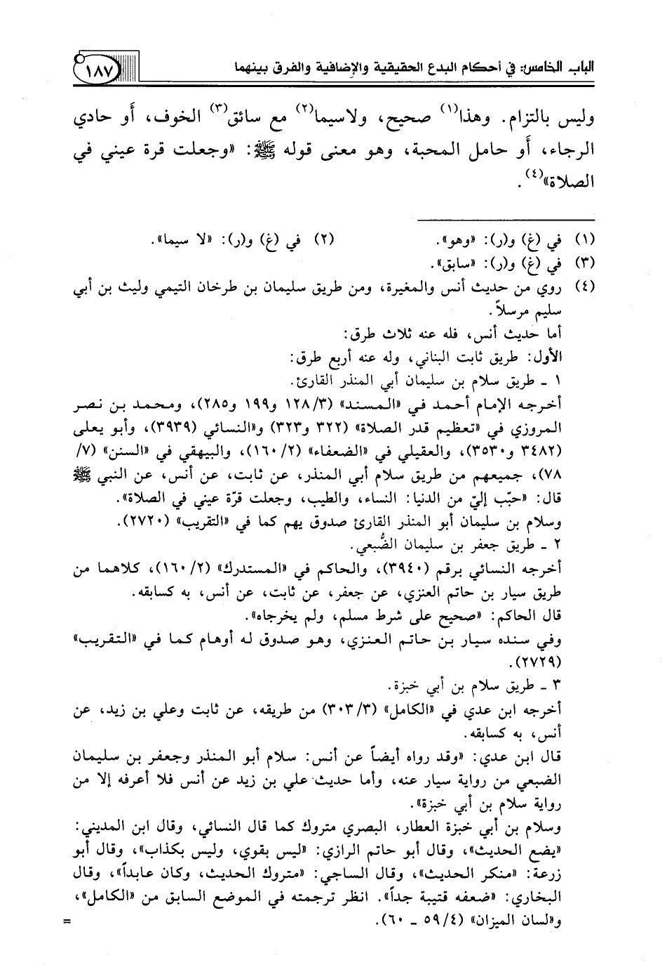 وليس بالتزام. وهذا (¬1) صحيح، ولاسيما (¬2) مَعَ سَائِقِ (¬3) الْخَوْفِ، أَو حَادِي الرَّجَاءِ، أَو حامل المحبة، وهو معنى قوله صلّى الله عليه وسلّم: "وجعلت قرة عيني في الصلاة" (¬4).