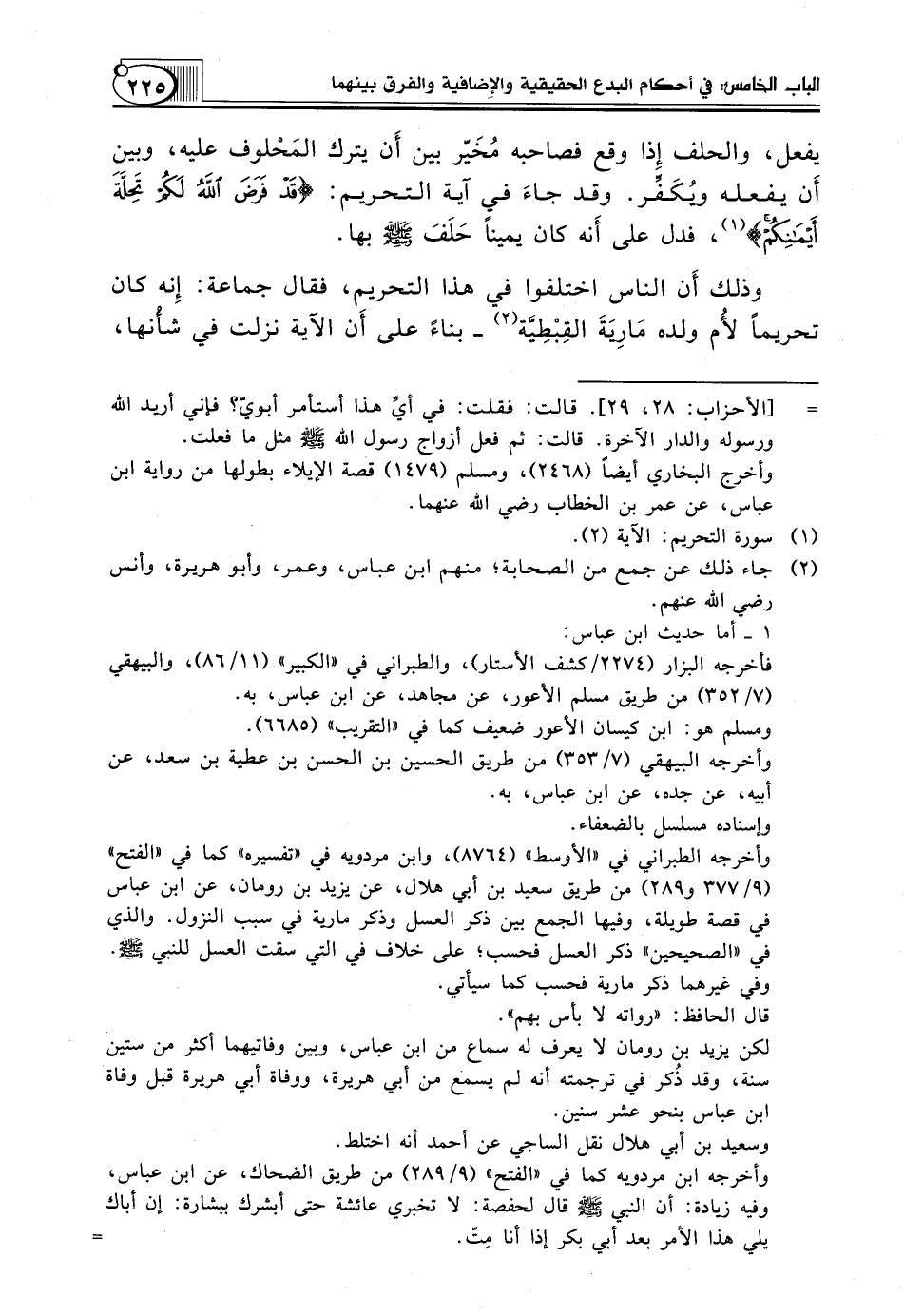 وَذَلِكَ أَن النَّاسَ اخْتَلَفُوا فِي هَذَا التحريم، فقال جماعة: إِنه كَانَ تَحْرِيمًا لأُم وَلَدِهِ مَارِيَةَ القِبْطِيَّة (¬2) ـ بِنَاءً على أَن الآية نزلت في شأْنها،