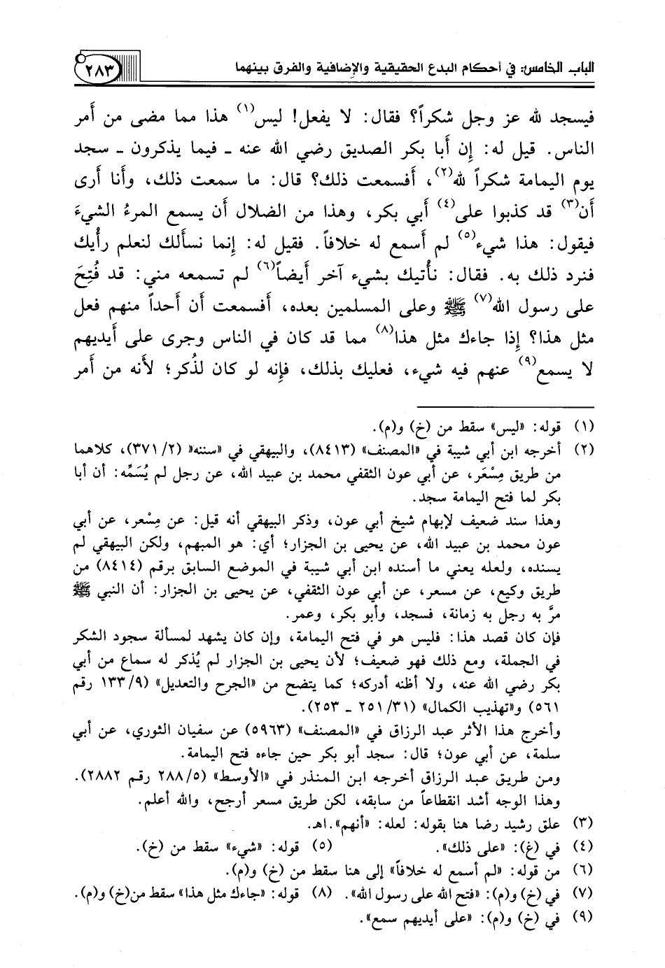 فإن كان قصد هذا: فليس هو في فتح اليمامة، وإن كان يشهد لمسألة سجود الشكر في الجملة، ومع ذلك فهو ضعيف؛ لأن يحيى بن الجزار لم يُذكر له سماع من أبي بكر رضي الله عنه، ولا أظنه أدركه؛ كما يتضح من "الجرح والتعديل" (9/ 133 رقم 561) و"تهذيب الكمال" (31/ 251 ـ 253).