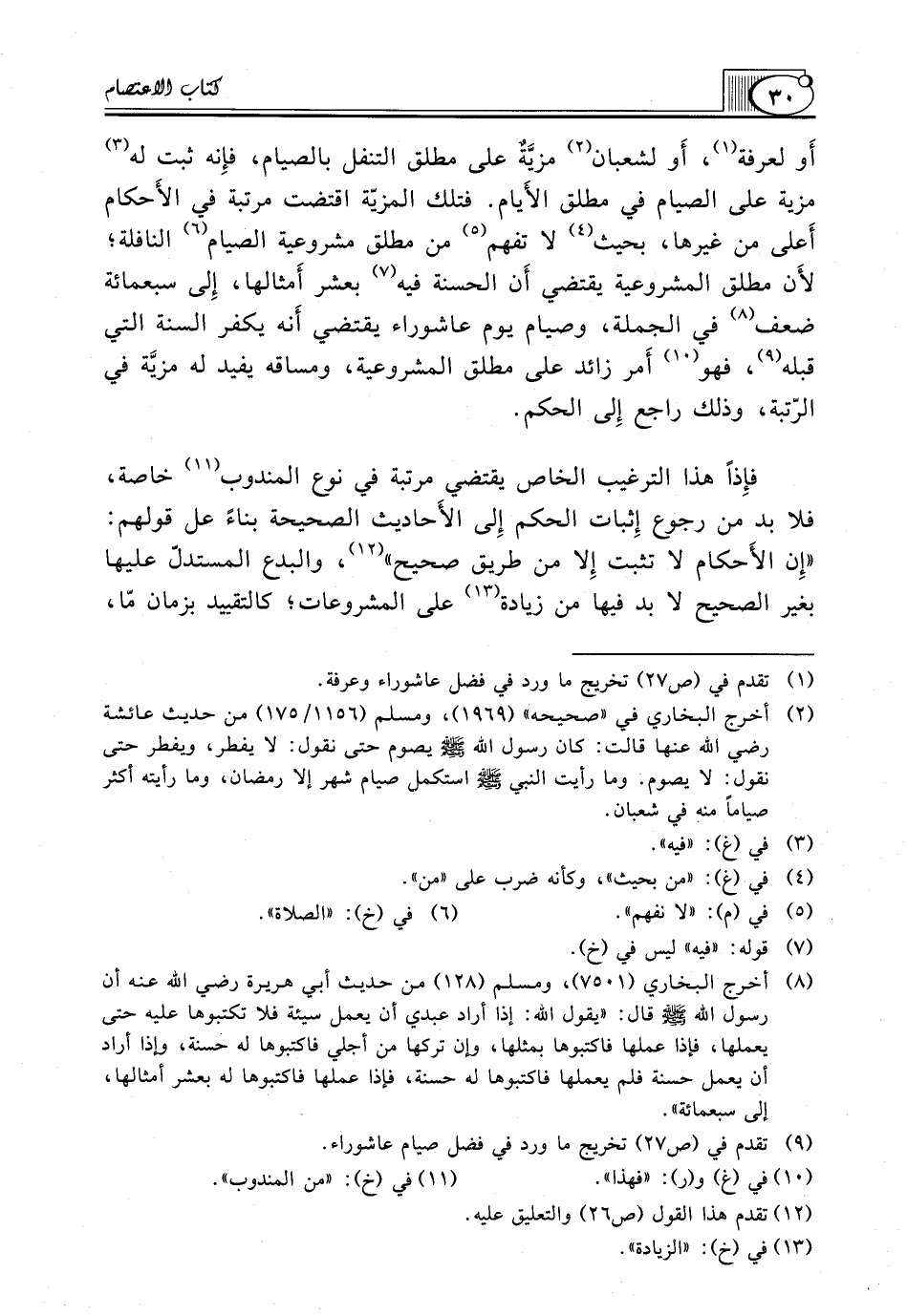 أَو لِعَرَفَةَ (¬1)، أَو لِشَعْبَانَ (¬2) مزيَّةٌ عَلَى مُطْلَقِ التَّنَفُّلِ بِالصِّيَامِ، فإِنه ثَبَتَ لَهُ (¬3) مَزِيَّةٌ عَلَى الصِّيَامِ فِي مُطْلَقِ الأَيام. فَتِلْكَ الْمَزِيَّةُ اقْتَضَتْ مَرْتَبَةً فِي الأَحكام أَعلى مِنْ غَيْرِهَا، بِحَيْثُ (¬4) لا تفهم (¬5) من مطلق مشروعية الصيام (¬6) النَّافِلَةِ؛ لأَن مُطْلَقَ الْمَشْرُوعِيَّةِ يَقْتَضِي أَن الْحَسَنَةَ فيه (¬7) بِعَشْرِ أَمثالها، إِلى سَبْعِمِائَةِ ضِعْفٍ (¬8) فِي الْجُمْلَةِ، وَصِيَامُ يَوْمِ عَاشُورَاءَ يَقْتَضِي أَنه يُكَفِّرُ السَّنَةَ الَّتِي قَبْلَهُ (¬9)، فَهُوَ (¬10) أَمر زَائِدٌ عَلَى مُطْلَقِ الْمَشْرُوعِيَّةِ، وَمَسَاقُهُ يُفِيدُ لَهُ مزيَّة فِي الرُّتْبَةِ، وَذَلِكَ رَاجِعٌ إِلى الْحُكْمِ.