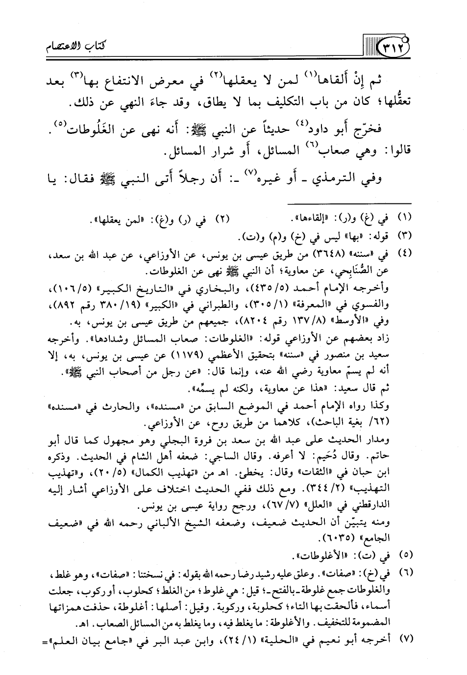 (¬4) في "سننه" (3648) من طريق عيسى بن يونس، عن الأوزاعي، عن عبد الله بن سعد، عن الصُّنَابِجي، عن معاوية؛ أن النَّبِيَّ صَلَّى اللَّهُ عَلَيْهِ وَسَلَّمَ نَهَى عَنْ الغلوطات.