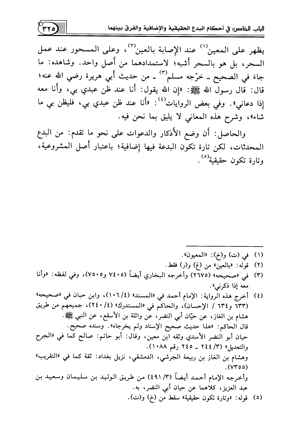 يظهر على المعين (¬1) عند الإِصابة بالعين (¬2)، وَعَلَى الْمَسْحُورِ عِنْدَ عَمَلِ السِّحْرِ، بَلْ هُوَ بِالسِّحْرِ أَشبه؛ لِاسْتِمْدَادِهِمَا مِنْ أَصل وَاحِدٍ. وَشَاهِدُهُ: مَا جاءَ فِي الصَّحِيحِ ـ خَرَّجَهُ مُسْلِمٌ (¬3) ـ مِنْ حَدِيثِ أَبي هُرَيْرَةَ رَضِيَ اللَّهُ عَنْهُ؛ قَالَ: قَالَ رَسُولُ اللَّهِ صَلَّى اللَّهُ عَلَيْهِ وَسَلَّمَ: "إِن اللَّهَ يَقُولُ: أَنا عِنْدَ ظَنِّ عَبْدِي بِي، وأَنا مَعَهُ إِذا دَعَانِي". وَفِي بَعْضِ الرِّوَايَاتِ (¬4): "أَنا عِنْدَ ظَنِّ عَبْدِي بِي، فَلْيَظُنَّ بِي مَا شَاءَ"، وَشَرْحُ هَذِهِ الْمَعَانِيَ لَا يَلِيقُ بِمَا نَحْنُ فِيهِ.