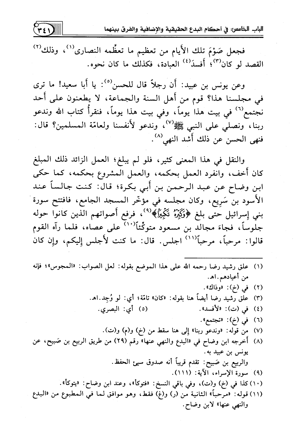 (¬8) أَخرجه ابن وضاح في "البدع والنهي عنها" رقم (29) من طريق الربيع بن صَبيح، عن يونس بن عبيد به.