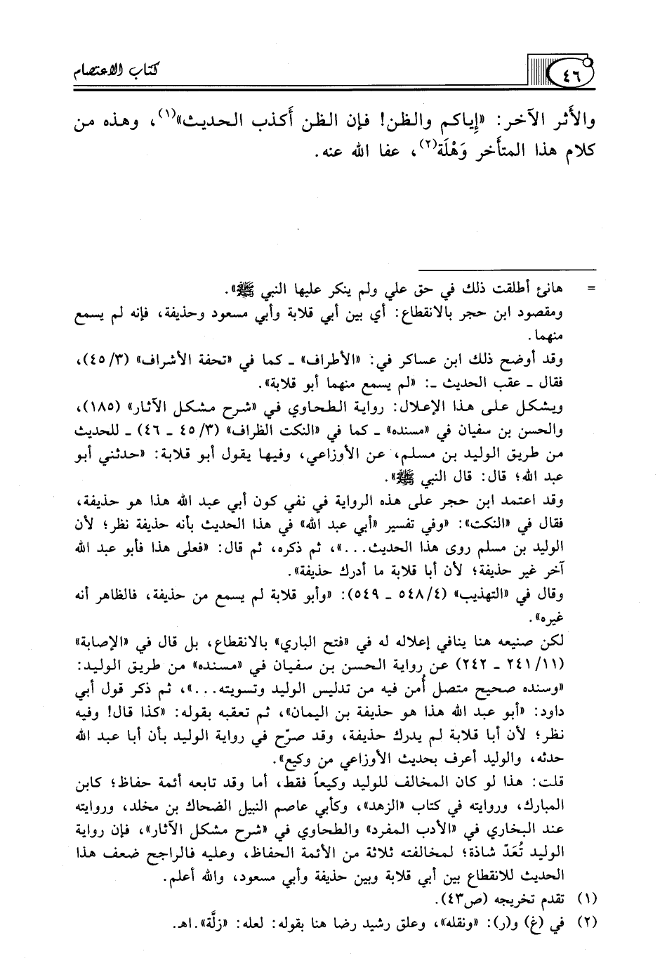 والأَثر الْآخَرُ: "إِياكم وَالظَّنَّ! فَإِنَّ الظَّنَّ أَكذب الْحَدِيثِ" (¬1)، وَهَذِهِ مِنْ كَلَامِ هَذَا المتأَخر وَهْلَة (¬2)، عفا الله عنه.