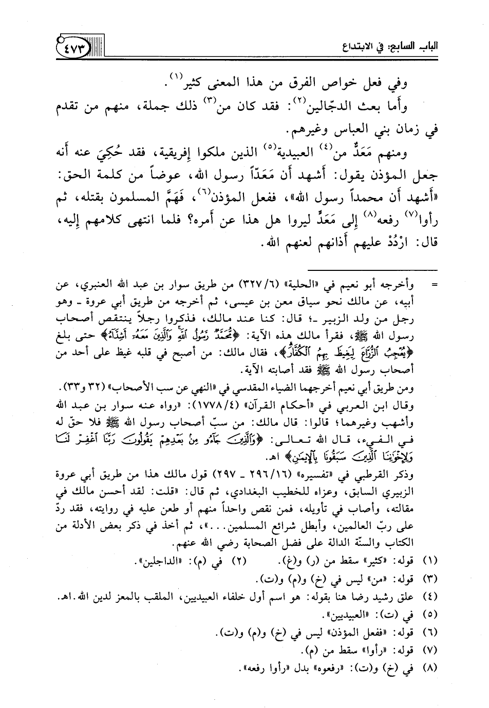 وَمِنْهُمْ مَعَدٌّ مِنَ (¬4) الْعُبَيْدِيَةِ (¬5) الَّذِينَ مَلَكُوا إِفريقية، فَقَدَ حُكِيَ عَنْهُ أَنه جَعَلَ الْمُؤَذِّنَ يَقُولُ: أَشهد أَن مَعَدّاً رَسُولَ اللَّهِ، عِوَضًا مِنْ كَلِمَةِ الْحَقِّ: "أَشهد أَن محمداً رسول الله"، ففعل المؤذن (¬6)، فَهَمَّ المسلمون بقتله، ثم رأوا (¬7) رفعه (¬8) إِلى مَعَدٍّ لِيَرَوْا هَلْ هَذَا عَنْ أَمره؟ فَلَمَّا انْتَهَى كَلَامُهُمْ إِليه، قَالَ: ارْدُدْ عَلَيْهِمْ أَذانهم لعنهم الله.