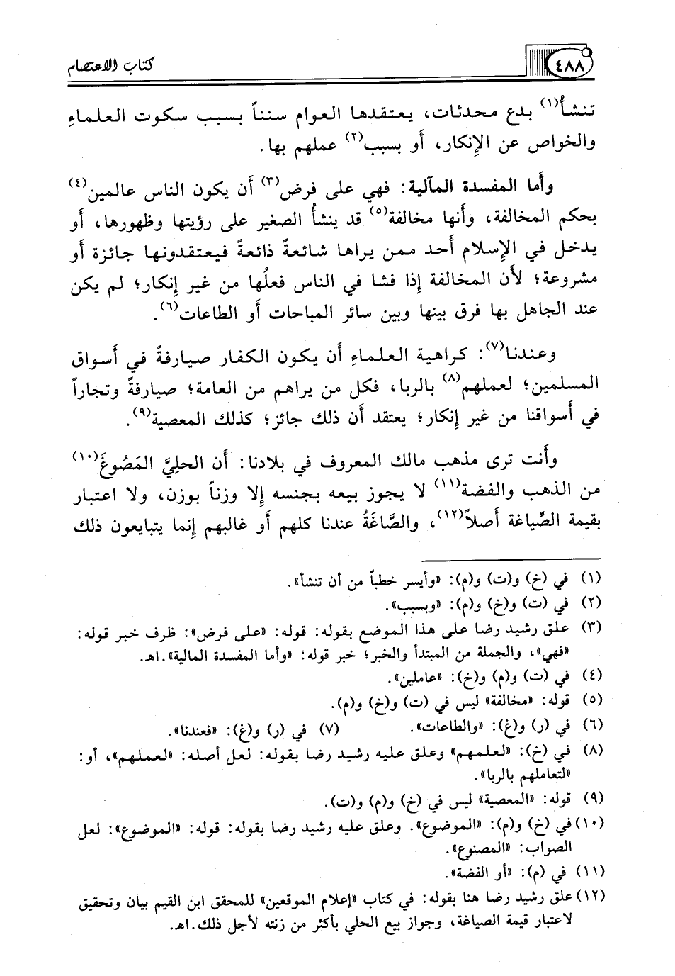(¬12) علق رشيد رضا هنا بقوله: في كتاب "إعلام الموقعين" للمحقق ابن القيم بيان وتحقيق لاعتبار قيمة الصياغة، وجواز بيع الحلي بأكثر من زنته لأجل ذلك. اهـ.
