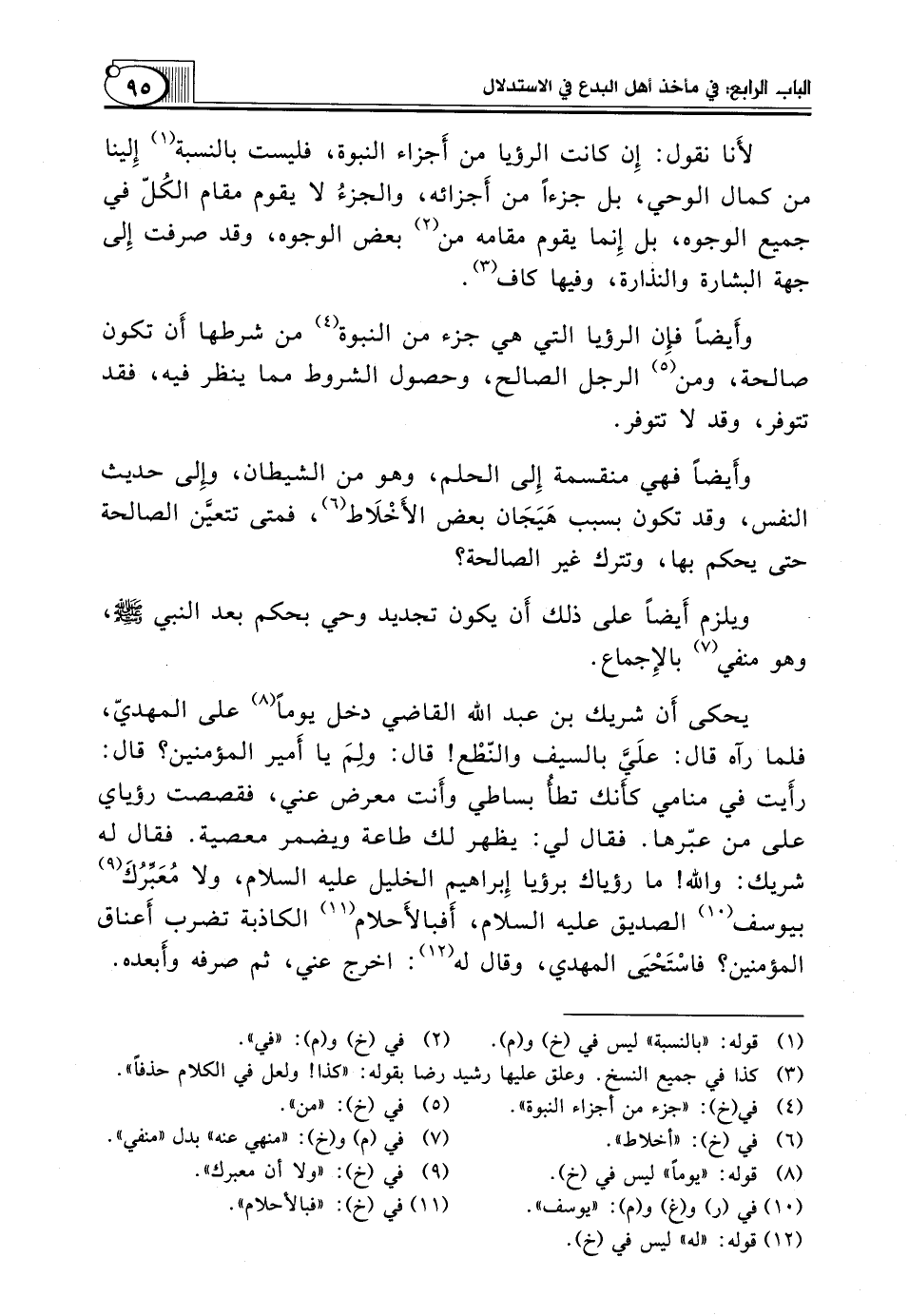 وأَيضاً فإِن الرُّؤْيَا الَّتِي هي جزء من النبوة (¬4) من شرطها أَن تكون صالحة، ومن (¬5) الرَّجُلِ الصَّالِحِ، وَحُصُولُ الشُّرُوطِ مِمَّا يُنْظَرُ فِيهِ، فَقَدْ تَتَوَفَّرُ، وَقَدْ لَا تَتَوَفَّرُ.
