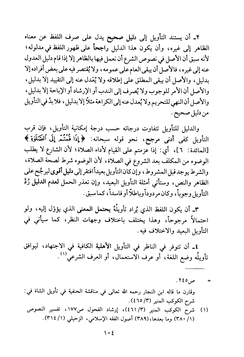 ٤ - أن تتوفر في الناظر في التأويل الأهلية الكافية في الاجتهاد، ليوافق تأويلُه وضع اللغة، أو عرف الاستعمال، أو العرف الشرعي (١).