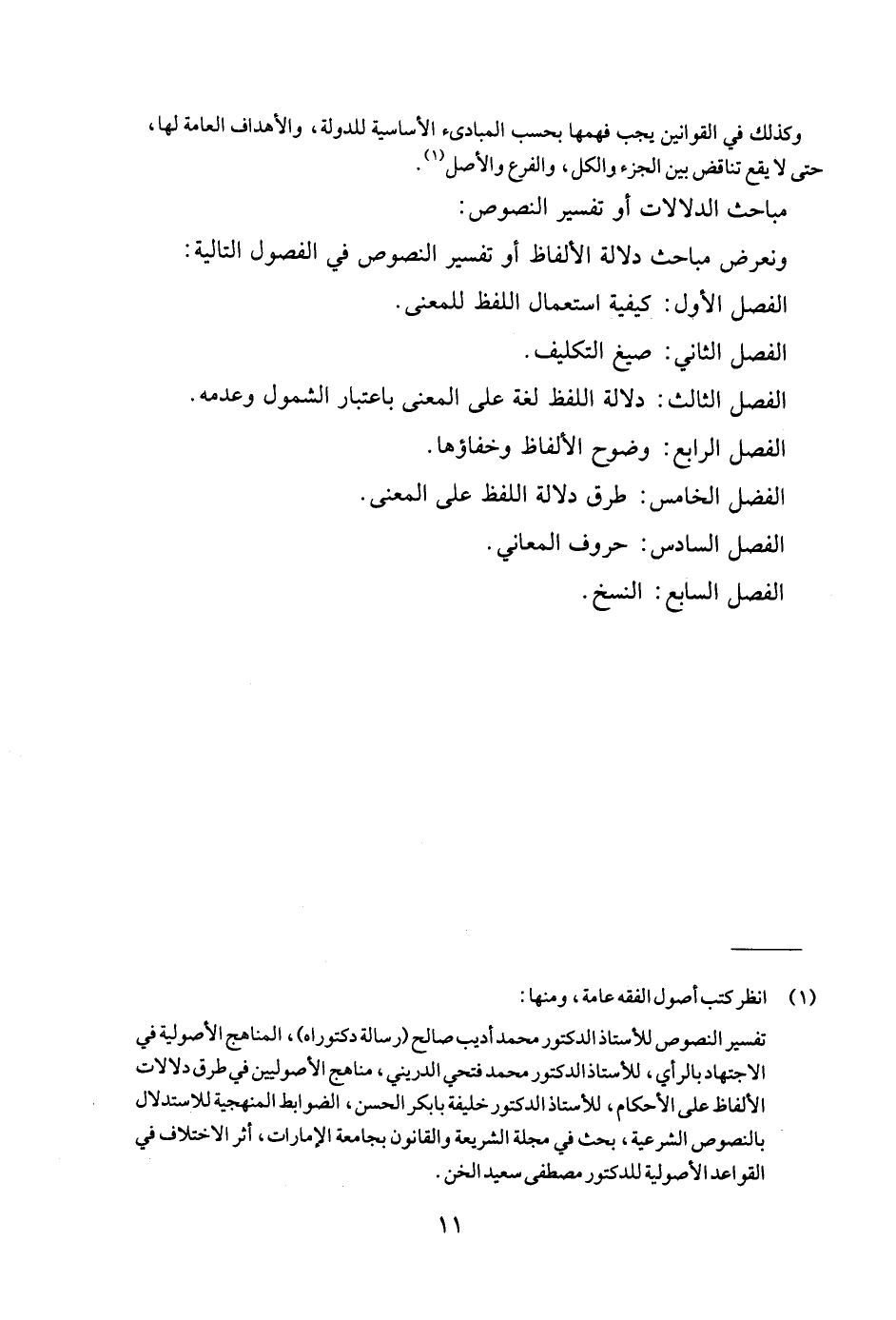 ونعرض مباحث دلالة الألفاظ أو تفسير النصوص في الفصول التالية:
