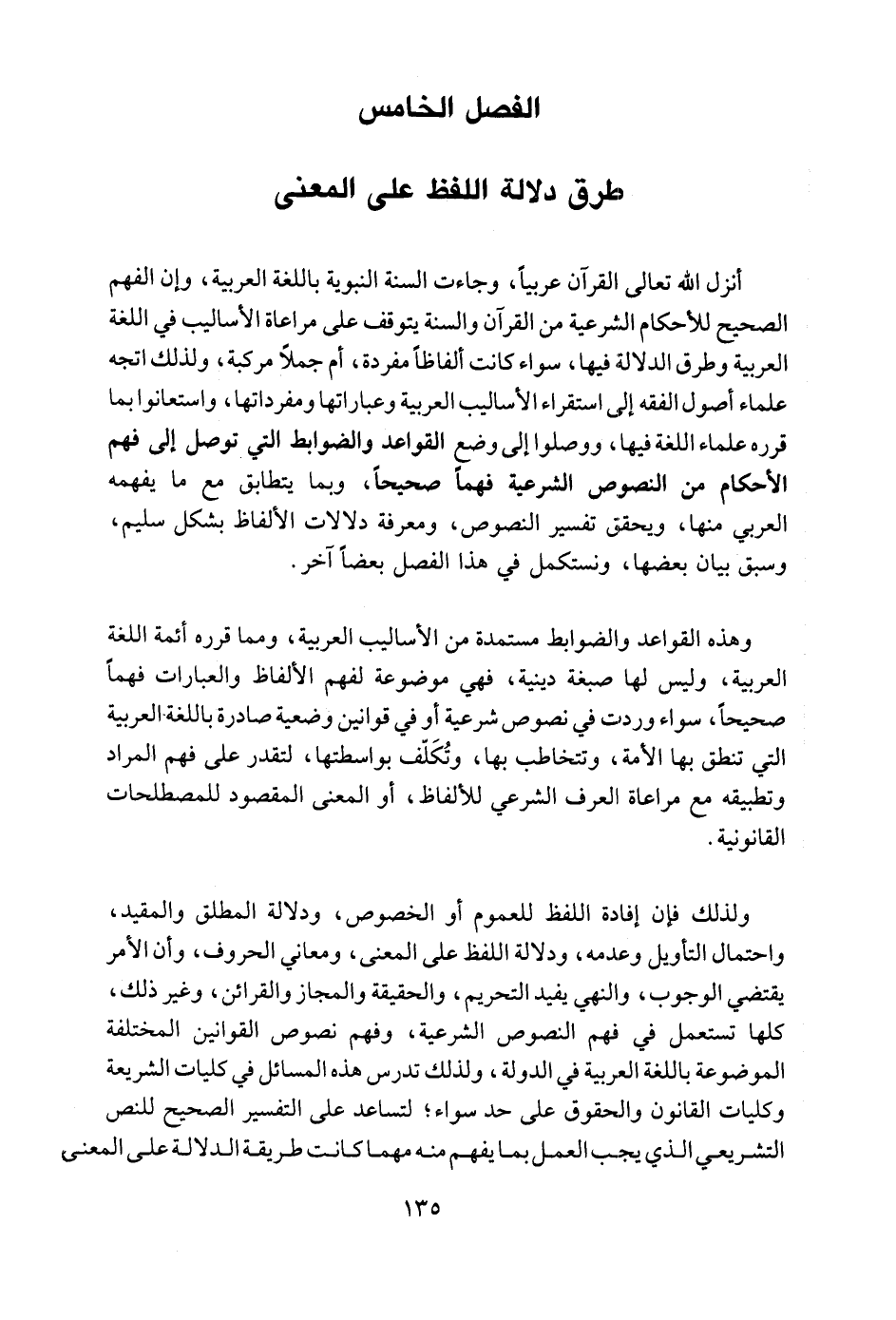 أنزل اللَّه تعالى القرآن عربيًّا، وجاءت السنة النبوية باللغة العربية، وإن الفهم الصحيح للأحكام الشرعية من القرآن والسنة يتوقف على مراعاة الأساليب في اللغة العربية وطرق الدلالة فيها، سواء كانت ألفاظًا مفردة، أم جملًا مركبة، ولذلك اتجه علماء أصول الفقه إلى استقراء الأساليب العربية وعباراتها ومفرداتها، واستعانوا بما قرره علماء اللغة فيها، ووصلوا إلى وضع القواعد والضوابط التي توصل إلى فهم الأحكام من النصوص الشرعية فهمًا صحيحًا، وبما يتطابق مع ما يفهمه العربي منها، ويحقق تفسير النصوص، ومعرفة دلالات الألفاظ بشكل سليم، وسبق بيان بعضها، ونستكمل في هذا الفصل بعضًا آخر.
