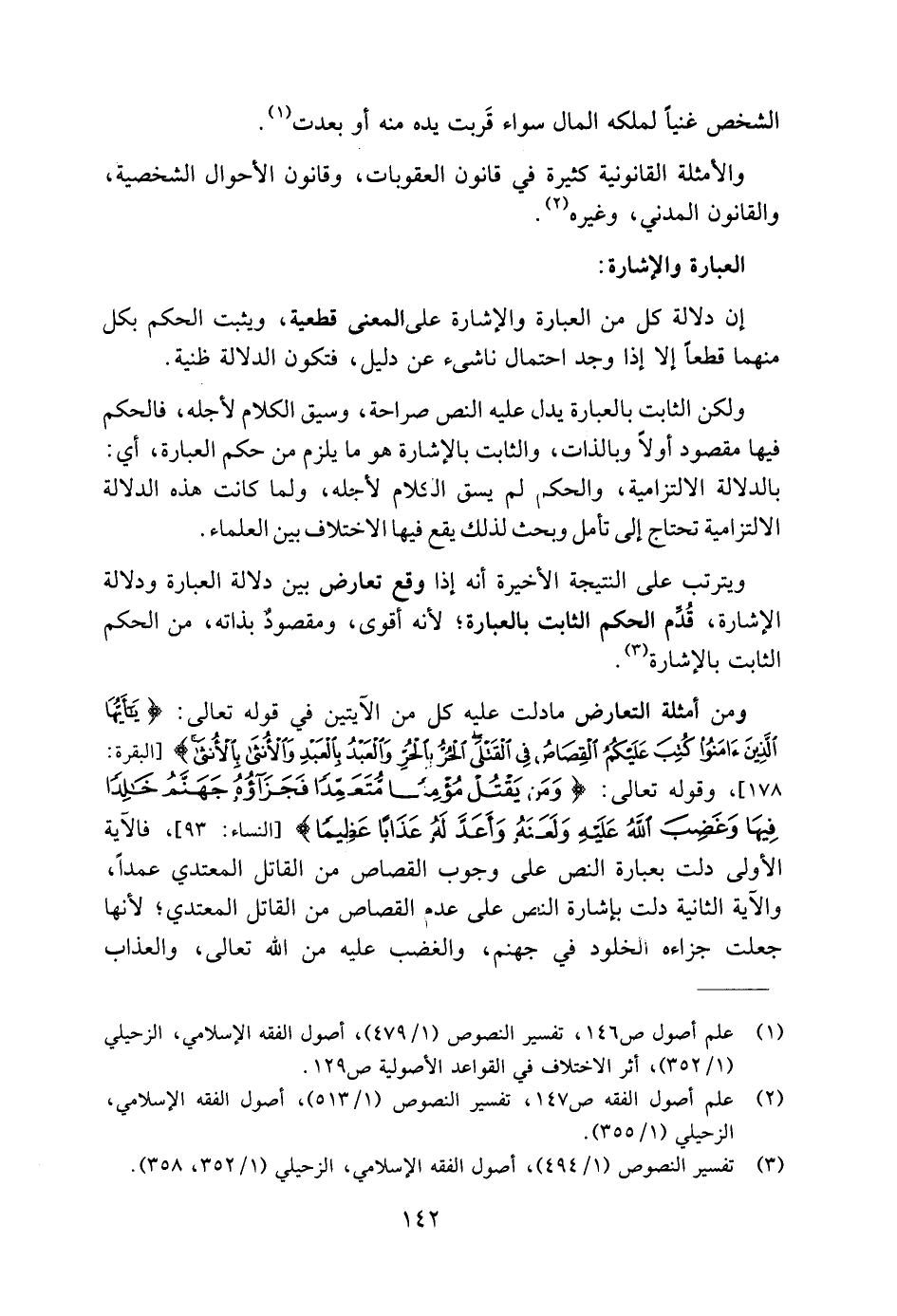 (٢) علم أصول الفقه ص ١٤٧، تفسير النصوص (١/ ٥١٣)، أصول الفقه الإسلامي، الزحيلي (١/ ٣٥٥).