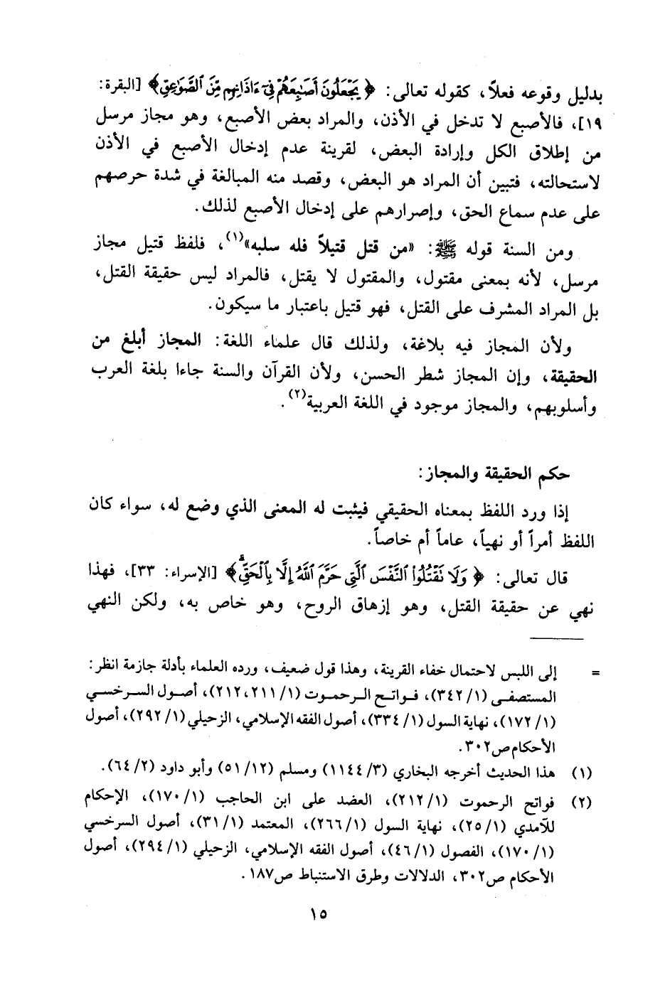 (٢) فواتح الرحموت (١/ ٢١٢)، العضد على ابن الحاجب (١/ ١٧٠)، الإحكام للآمدي (١/ ٢٥)، نهاية السول (١/ ٢٦٦)، المعتمد (١/ ٣١)، أصول السرخسي (١/ ١٧٠)، الفصول (١/ ٤٦)، أصول الفقه الإسلامي، الزحيلي (١/ ٢٩٤)، أصول الأحكام ص ٣٠٢، الدلالات وطرق الاستنباط ص ١٨٧.