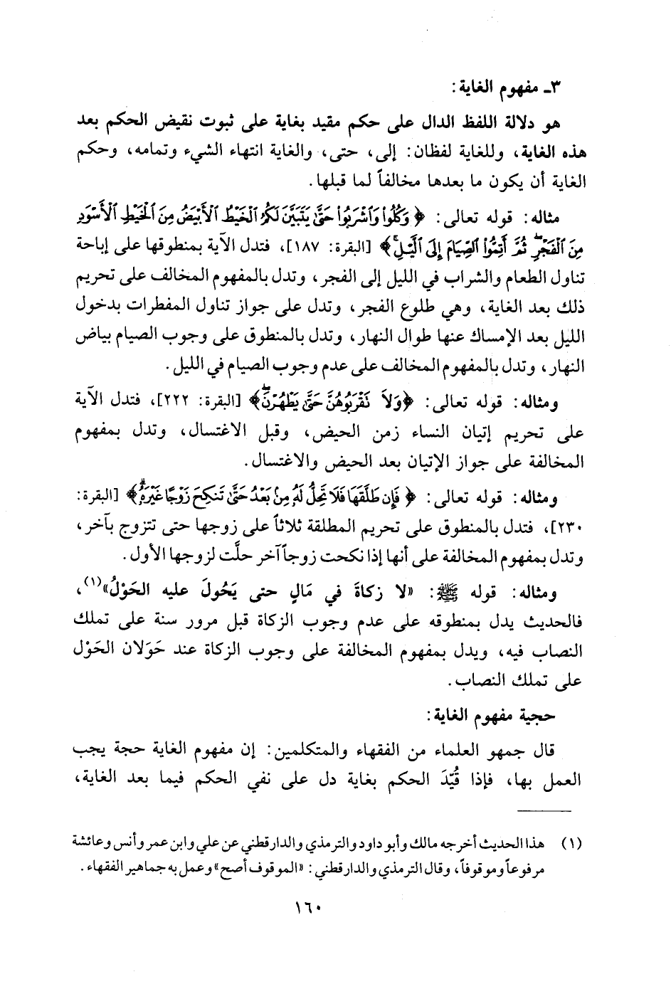 قال جمهور العلماء من الفقهاء والمتكلمين: إن مفهوم الغاية حجة يجب الحمل بها، فإذا قُيّدَ الحكم بغاية دل على نفي الحكم فيما بعد الغاية،