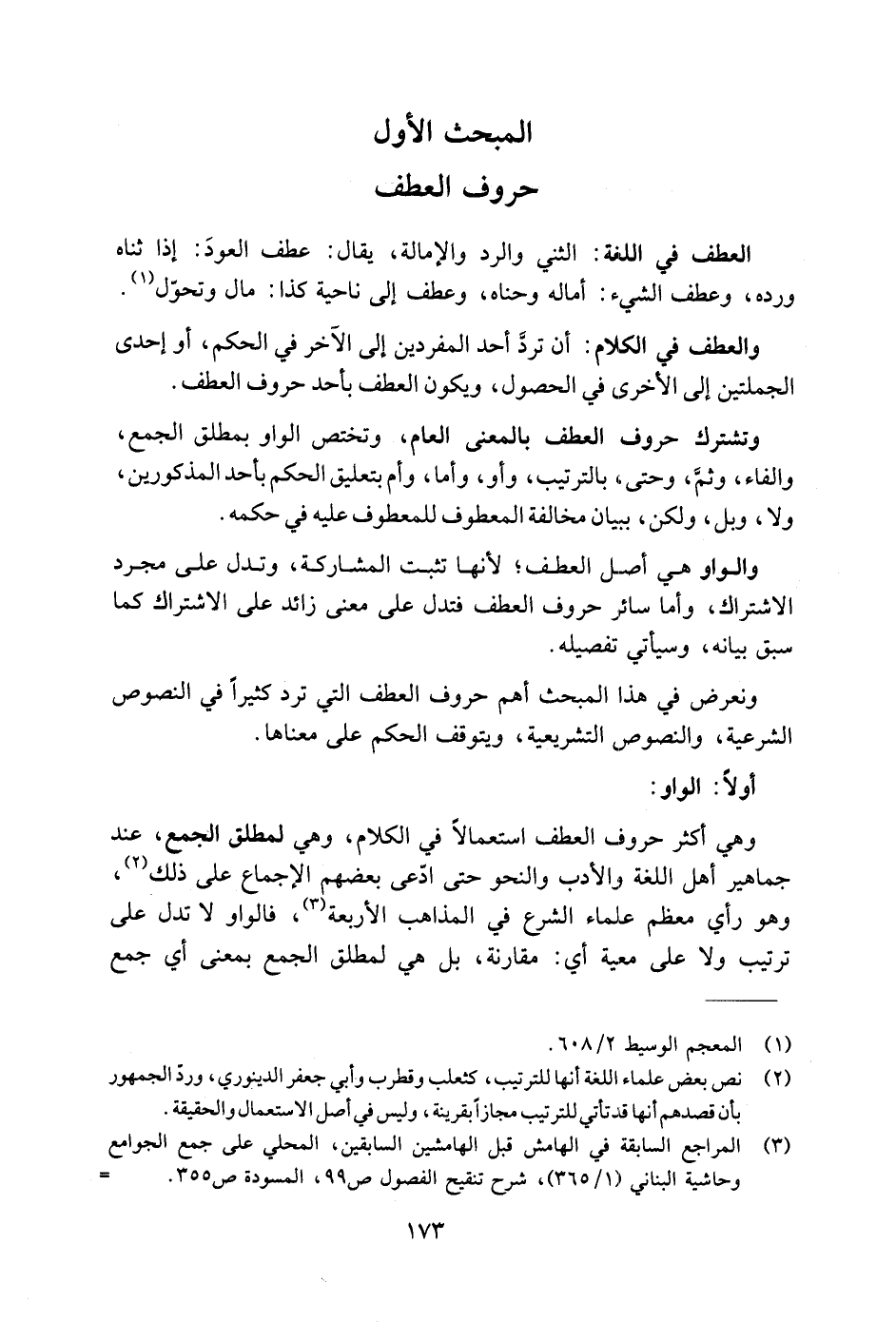 ونعرض في هذا المبحث أهم حروف العطف التي ترد كثيرًا في النصوص الشرعية، والنصوص التشريعية، ويتوقف الحكم على معناها.