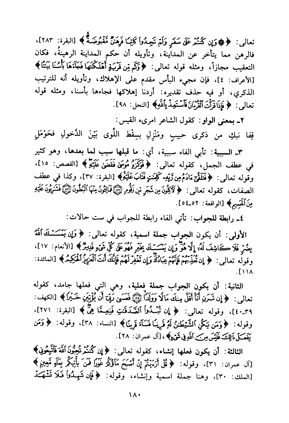٤ - رابطة للجواب: تأتي الفاء رابطة للجواب في ست حالات: