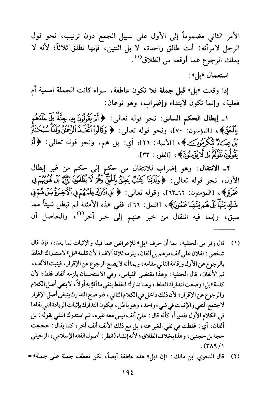 (٢) قال النحوي ابن مالك: "إن "بل" هذه عاطفة أيضًا، لكن تعطف جملة على جملة" =