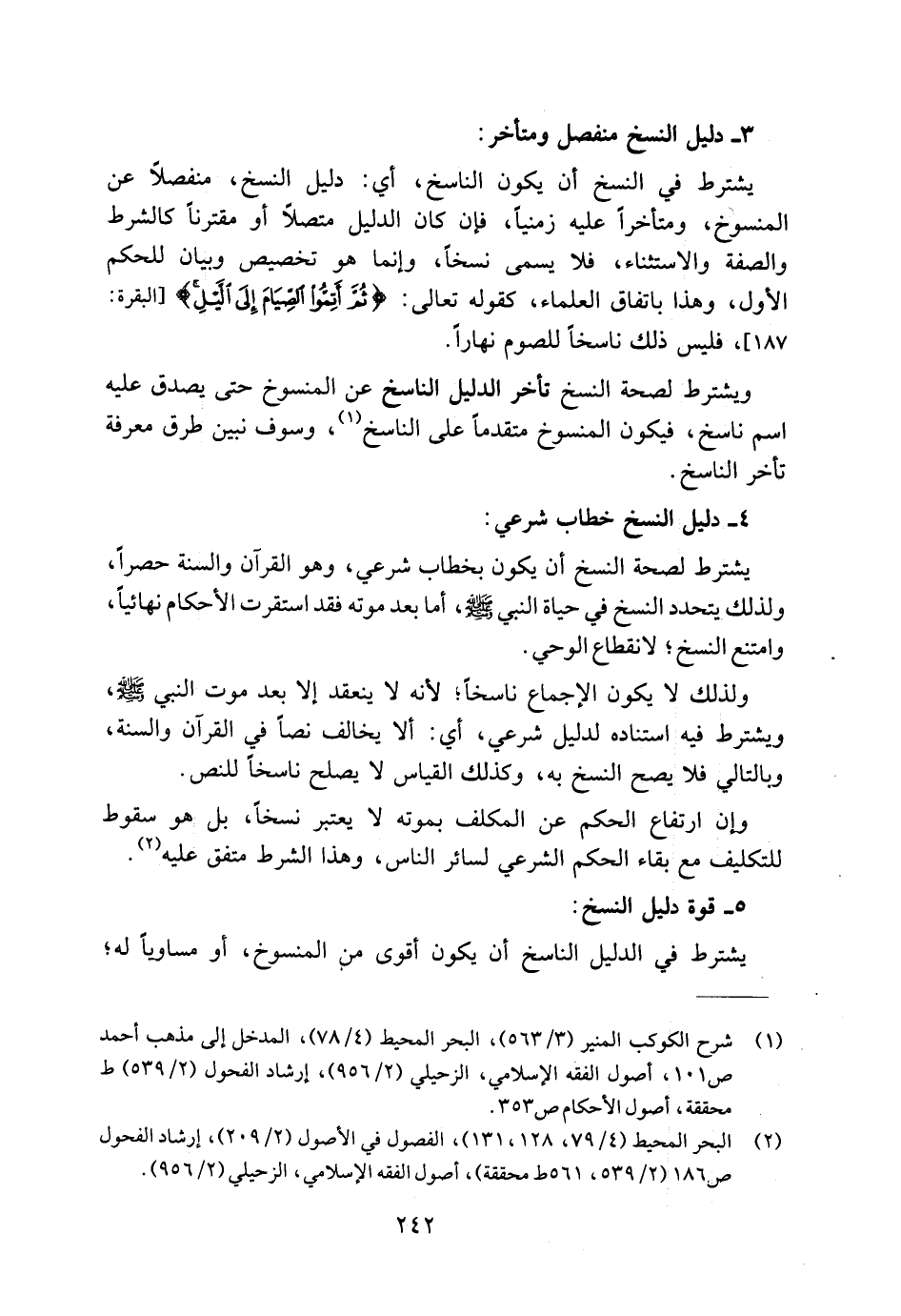 يشترط في الدليل الناسخ أن يكون أقوى من المنسوخ، أو مساويًا له؛
