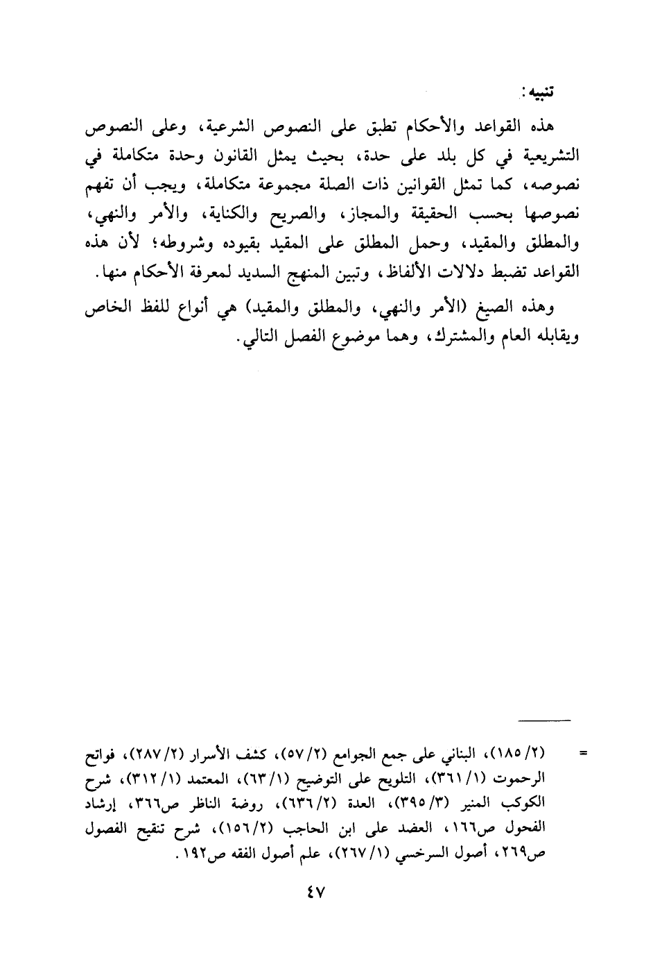 وهذه الصيغ (الأمر والنهي، والمطلق والمقيد) هي أنواع للفظ الخاص ويقابله العام والمشترك، وهما موضوع الفصل التالي.