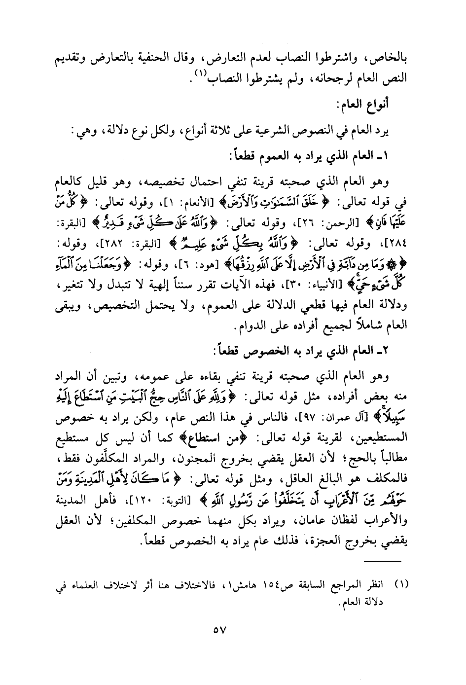 (١) انظر المراجع السابقة ص ١٥٤ هامش ١، فالاختلاف هنا أثر لاختلاف العلماء في دلالة العام.