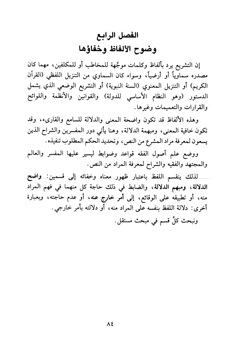 الفصل الرابع وضوح الألفاظ وخفاؤها